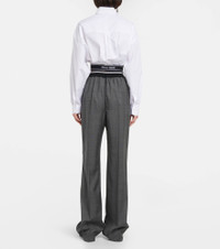 Master sports-luxe tailoring with these wide-leg pants from Miu Miu. Made from a technical fabric in an easy-to-style checked pattern, the design has an elasticated logo intarsia waist and sharply pressed pleats through the legs. Product Details - Made in Italy - Material: 100% virgin wool - Pockets: side slit pockets - Designer color name: Ardesia - Elasticated waistband - Pocket lining: 100% viscose - Care instructions: dry clean - Item number: P00753180 Size & Fit - Fits large to size - we recommend trying one size smaller - Elasticated waist - Wide-leg - High-waisted - The model seen in the picture is 178cm-5'10" and wearing a size IT 38