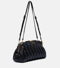 This clutch is made using Miu Miu's signature matelasse technique, which brings a youthful energy to leather goods. The design features gold-toned logo lettering and a detachable shoulder strap for easy carry. Product Details - Material: lamb leather - Lining: fabric - Made in Italy - Color: black - Designer color name: Black - Hardware color: gold - Closure: two-way zipped top - Internal details: internal zipped and slot pockets - Detachable shoulder strap - Includes: dust bag - Item number: P01147478 Size & Fit - Height 15cm-6" - Min. width 25cm-10" - Max. width 30cm-12" - Depth 11cm-4.5" - Adjustable shoulder strap - Min. length shoulder strap 64cm-25" - Max. length shoulder strap 73cm-28.5"