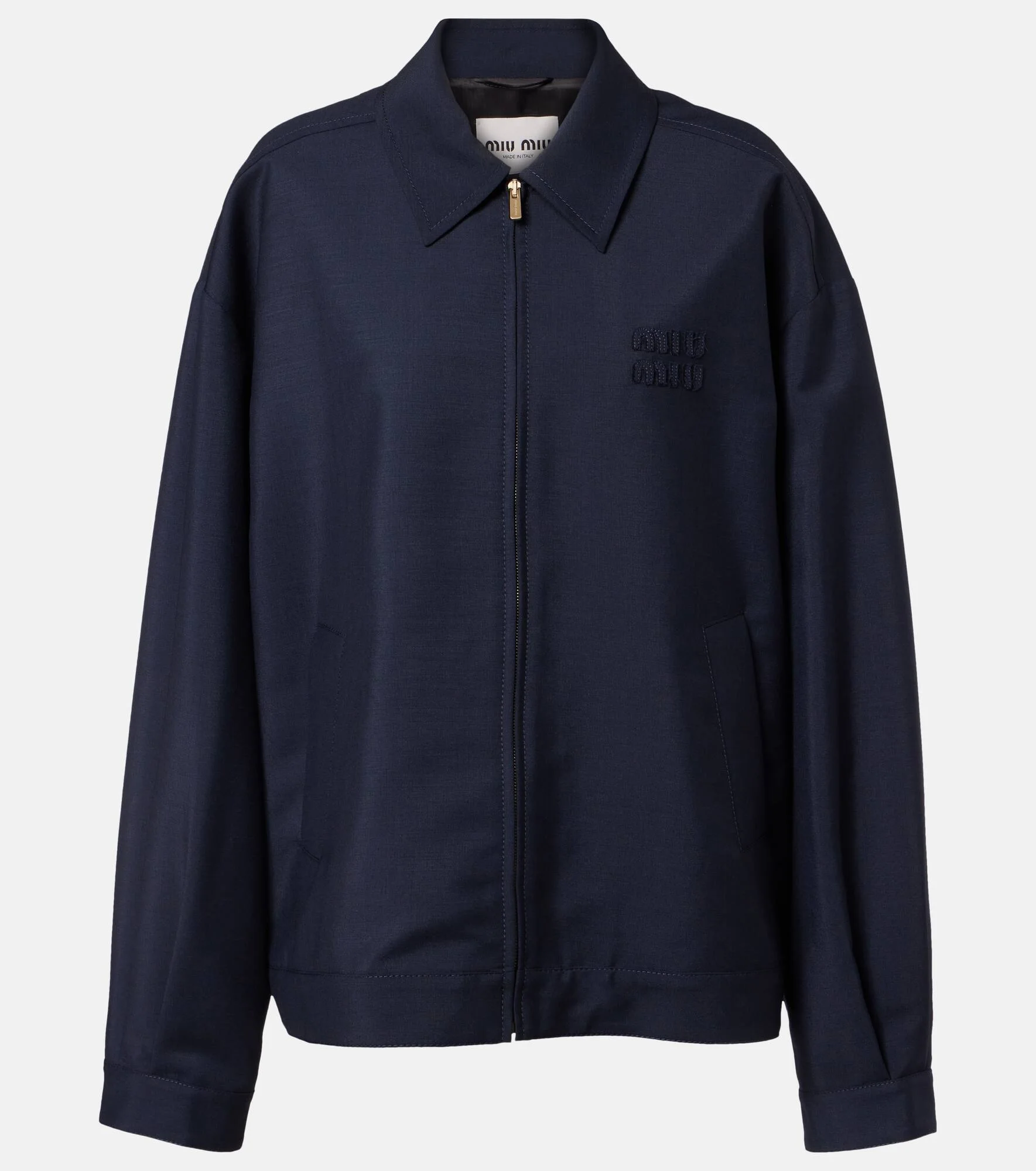 Uninhibited and deliberately subversive: these are the hallmarks of Miuccia Prada’s Miu Miu. This blouson jacket is Italian-crafted from mohair and wool into a relaxed silhouette with tonal logo detailing at the chest. Product Details - Material: 60% mohair, 40% wool - Care instructions: dry clean - Made in Italy - Designer color name: Blue - Item color: blue - Contains non-textile parts of animal origin - Hardware color: gold - Closure: zipped front - Collar: classic (Straight point) - Pockets: welt pockets - Cuff: one button - Item number: P01117044 Size & Fit - True to size - Dropped shoulders - Designed for a loose fit - Non-stretchy fabric - Falls below the hip - The model seen in the picture is 178cm-5'10" and wearing a size IT 40