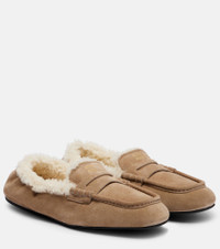 Shearling-lined suede penny loafers