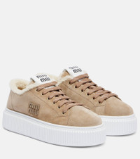 Shearling-lined suede platform sneakers