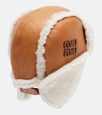 Invigorate your accessories rotation with distinctive pieces like this hat from Miu Miu. Expertly crafted from sheepskin leather and trimmed with plush shearling, the design is complete with an adjustable tab at the back and logo detailing for instant recognition. Product Details - Material: 100% sheep leather - Care instructions: specialist clean - Made in Italy - Designer color name: Cognac+Naturale - Item color: beige, white - Details: 100% calf leather - Contains non-textile parts of animal origin - Item number: P01084279 Size & Fit - Circumference size S 57cm-22.5" - Circumference size M 58cm-23" - Circumference size L 59cm-23"