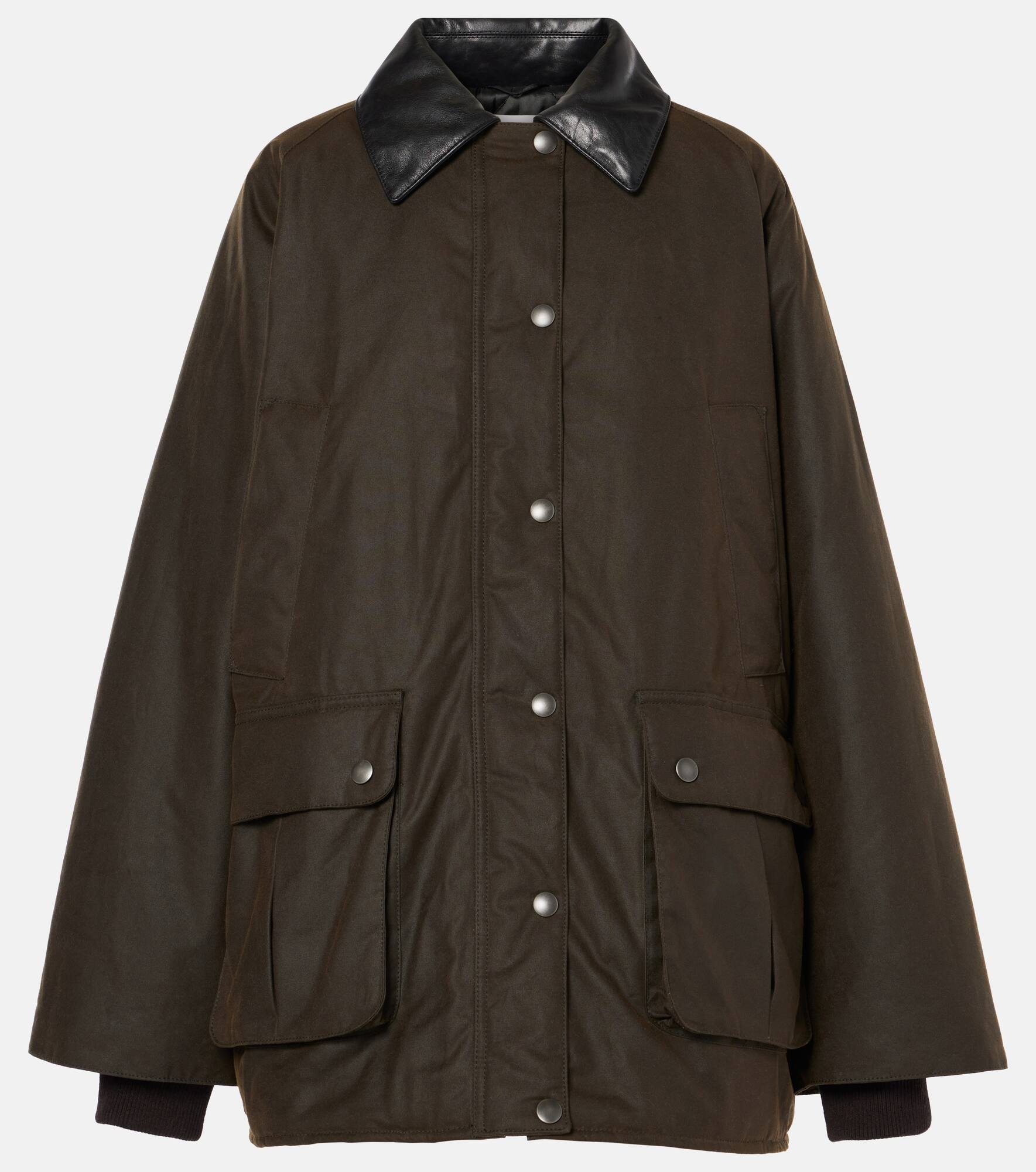 Product Details - Material: 100% cotton - Care instructions: do not wash - Made in Italy - Designer color name: Ebano - Closure: zipper, snap-button fastenings - Pockets: patch pockets, breast pockets - Contains non-textile parts of animal origin - Lining: 100% viscose - Fully lined - Filling: 100% polyester - Trim: 100% leather - Item number: P00972933 Size & Fit - Fits large to size - we recommend trying one size smaller - Oversized - Non-stretchy fabric - Falls below the hip - The model seen in the picture is 178cm-5'10" and wearing a size IT 38