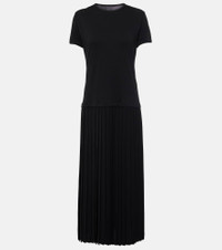 Short Sleeve Midi Dress with Pleated Skirt in Black