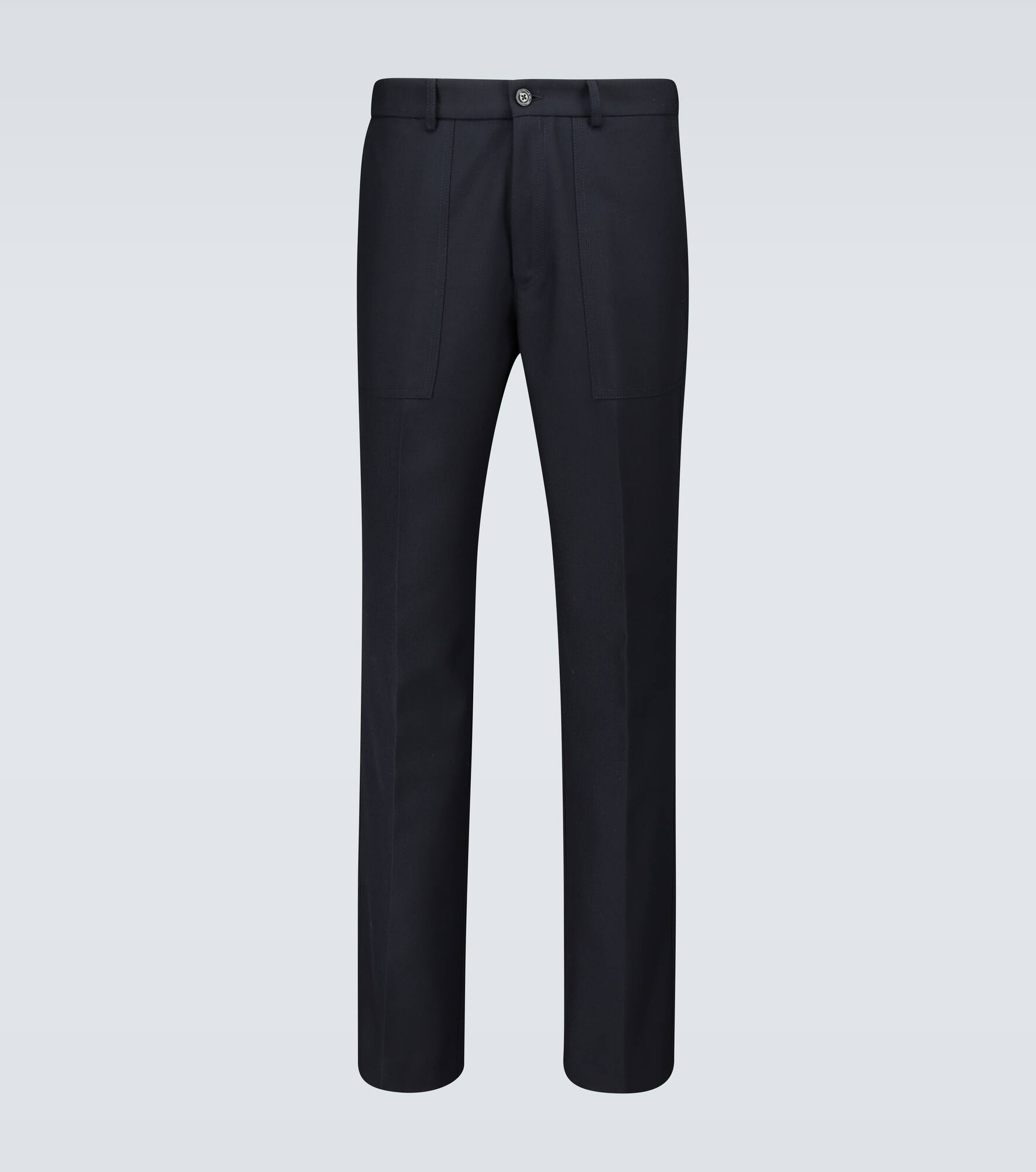 A part of the 2 MONCLER 1952 Moncler Genius collection, these navy pants sport a classic fit and are finely Italian-crafted from a wool and technical blend, accented by large patch pockets on the back. - material: 55% polyester, 45% wool - lining: 100% viscose - side slit pockets, back pockets - zipper fly, button fastening - Made in Italy - Designer colour name: Navy