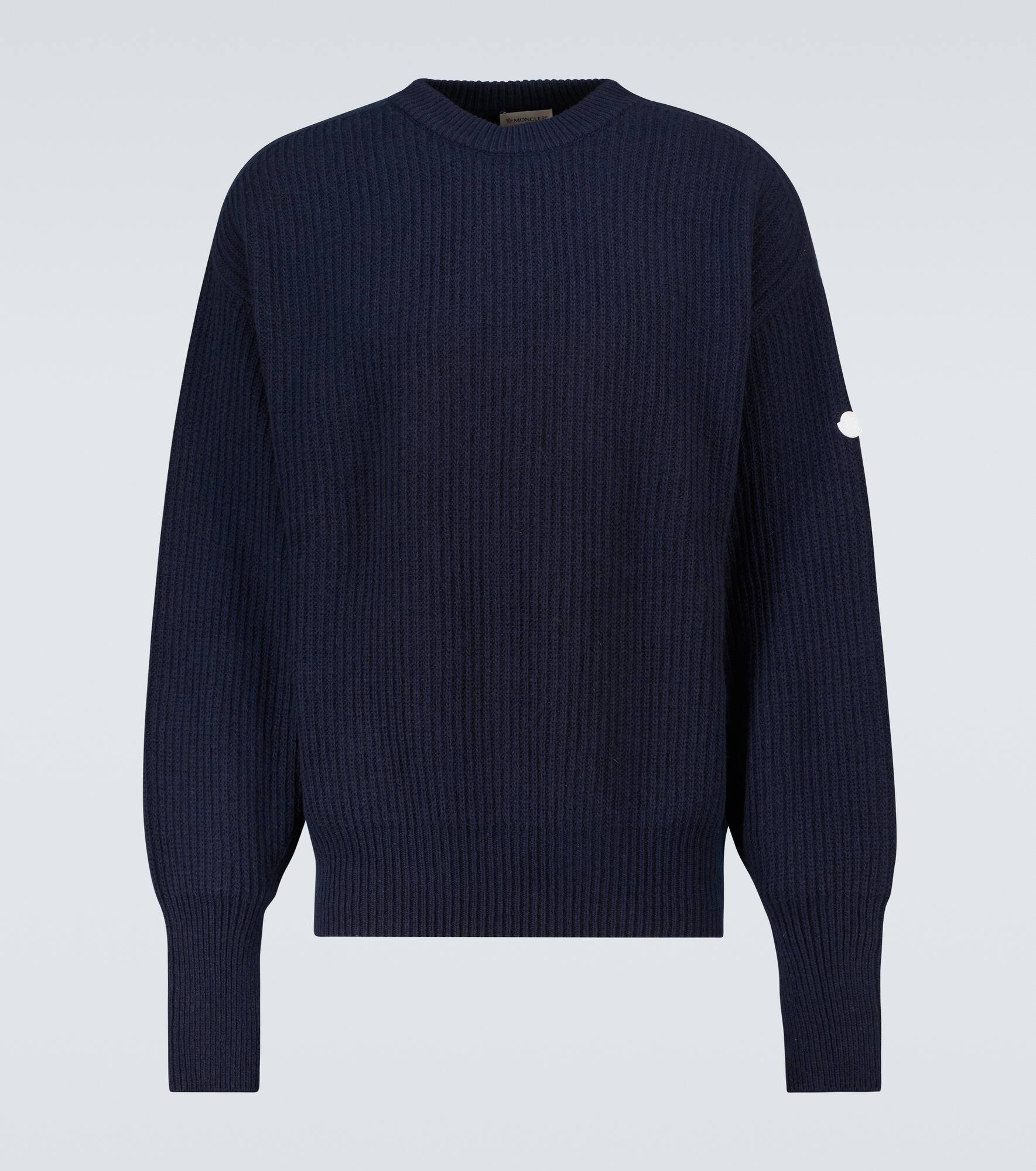 Spun from cashmere and wool blend, this navy crewneck sweater from Moncler Genius' 2 Moncler 1952 line has a rib-knit design with slightly puffed sleeves and sports a white logo patch. Product Details - Material: 3% wool, 97% cashmere - Care instructions: dry clean - Made in Italy - Designer color name: Navy - Item number: P00615649 Size & Fit - True to size - Dropped shoulders - Oversized - Mid-weight material - Falls below the hip - The model in the picture is 185cm-6'1" and wearing a size M