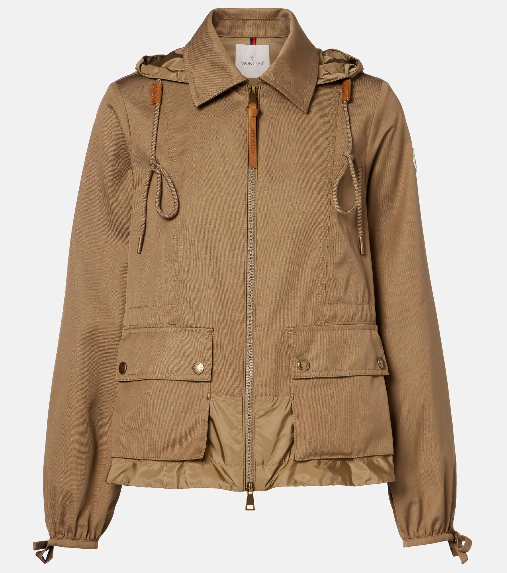 Navigate everyday styling with pieces like the Adenium jacket from Moncler. Featuring a nylon panel at the bottom, the refined style is complete with a detachable drawstring hood, a two-way zipped front, and snap-buttoned pockets. Product Details - Material: 68% polyester, 32% cotton - Care instructions: machine wash at 30 degrees - Made in Romania - Color: brown - Designer color name: 226 - Material II: 100% polyamide - Lining: 100% polyamide - Lining II: 100% polyamide - Hood: 100% polyamide - Closure: two-way zipped front - Detachable drawstring hood - Pockets: snap-buttoned pockets - Self-tie cuffs - Item number: P01141786 Size & Fit - True to size - Loose fit, drawstring waist - Falls to the hip - The model seen in the picture is 178cm-5'10" and wearing a size 00