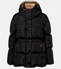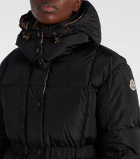 Highly-technical fabrics and sophisticated textures take center stage in Moncler's Agneux down jacket. This quilted style is crafted from Nylon Technique, a water-repellent material with a shiny satin finish, and rounded off by a gathered, belted waist. Product Details - Material: 100% polyamide - Care instructions: hand wash - Made in Moldova - Designer color name: 999 - Item color: black, beige - Lining: 100% polyamide - Lining II: 100% polyamide - Filling: 90% down, 10% feathers - Contains non-textile parts of animal origin - Hardware color: antique gold, black - Closure: two-way zipped front with snap-button fastenings - Detachable hood - Cuff: elasticated - Elasticated waistband - Pockets: zipped pockets - Item number: P01100845 Size & Fit - True to size - Loose fit, elasticated waist - Non-stretchy fabric - Falls below the hip - The model seen in the picture is 178cm-5'10" and wearing a size 0