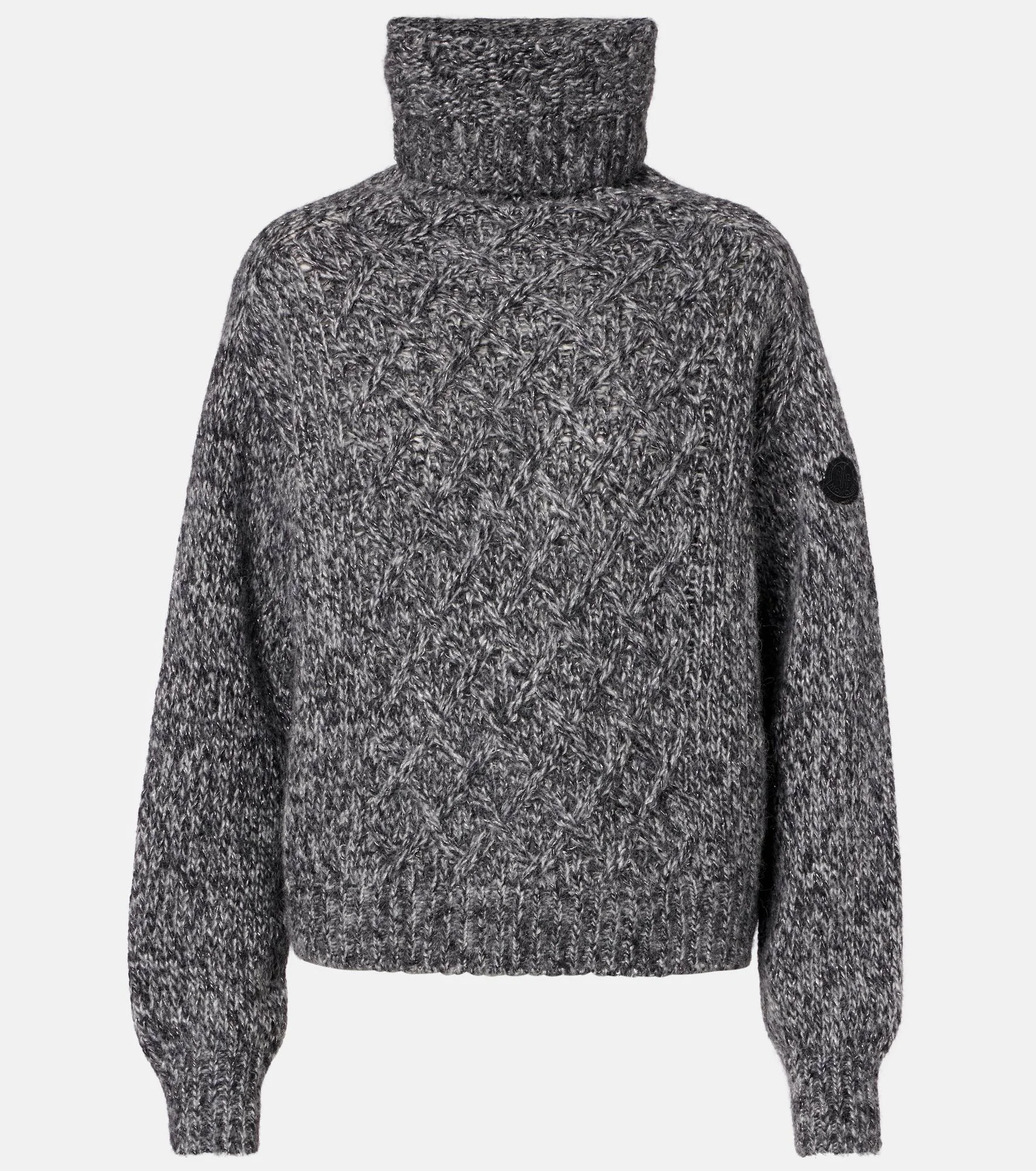 This Moncler sweater is crafted from a soft alpaca blend, reflecting the brand's refined craftsmanship and unparalleled innovation. The design showcases a turtleneck and an argyle texture at the front. Product Details - Material: 56% alpaca wool, 31% polyamide, 5% viscose, 5% wool, 3% metallic fibres - Care instructions: dry clean - Made in Romania - Designer color name: P99 - Item color: gray - Collar: turtleneck - Cuff: ribbed - Hem: ribbed - Item number: P01100872 Size & Fit - True to size - Dropped shoulders - Designed for a loose fit - Slightly stretchy fabric - Falls to the hip - The model seen in the picture is 178cm-5'10" and wearing a size XS