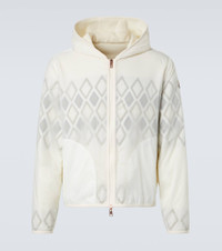 Moncler achieves an unparalleled balance between technical and design elements with this hooded jacket. The reversible model is crafted from water-repellent ripstop nylon on one side and virgin wool on the other, with an allover argyle pattern. Product Details - Material: 100% polyamide - Care instructions: dry clean - Made in Romania - Designer color name: White - Item color: white - Lining: 100% virgin wool - Other inner trims: 100% virgin wool - Hardware color: bronze - Closure: two-way zipped front - Pockets: side slit pockets, internal pockets - Hood - Item number: P01068474 Size & Fit - True to size - Straight fit - Non-stretchy fabric - Slightly cropped - The model in the picture is 185cm-6'1" and wearing a size L
