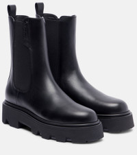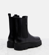 Black leather boots are a wardrobe essential and these Moncler ones are ultimate transseasonal pair. The style features a classic Chelsea silhouette with pull tabs and elasticated sides for ease of wear. Product Details - Upper: leather - Lining: leather - Sole: fabric insole, rubber sole - Toe shape: round toe - Made in Italy - Includes: shoe box - Designer color name: 999 - Item color: black - Closure: elasticated sides - Item number: P01074966 Size & Fit - Fits slightly large to size - we recommend trying a half size smaller - European sizes - 5cm-2" platform (size EU 38) - 6cm-2.5" wedge heel (size EU 38)