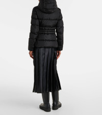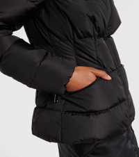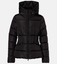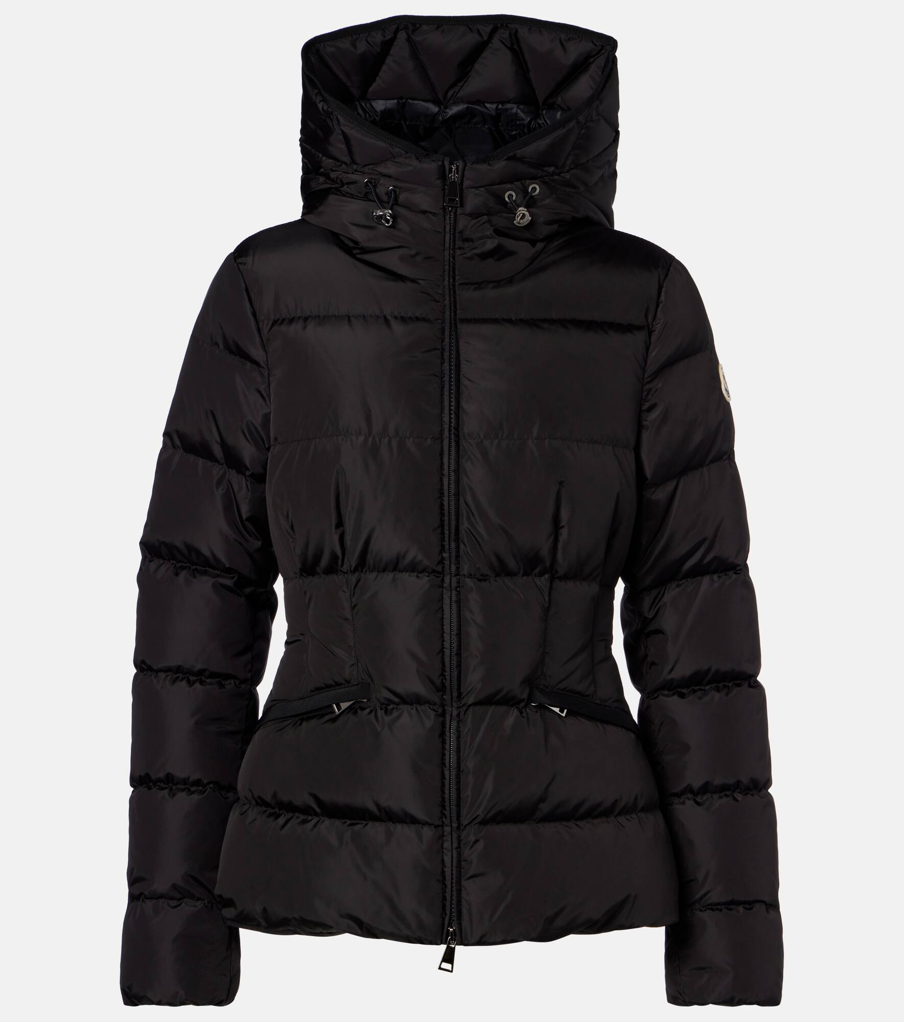 The Avoce jacket from Moncler features the brand's water-repellent, nylon technique for added cold-weather protection. The down-filled design features a flattering cinched waist, adjustable hood, and the brand's signature logo patch. Product Details - Material: 100% polyamide - Care instructions: hand wash - Made in Italy - Designer color name: Black - Item color: black - Lining: 100% polyamide - Lining II: 100% polyamide - Filling: 90% down, 10% feathers - Contains non-textile parts of animal origin - Closure: two-way zipped front - Drawstring hood - Pockets: zipped pockets - Cuff: elasticated - Elasticated waistband - Item number: P01074026 Size & Fit - True to size - Cinched waist - Non-stretchy fabric - Falls to the hip - The model seen in the picture is 178cm-5'10" and wearing a size 0