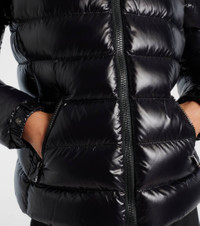 Since the 1980s, Moncler has cemented its cold-weather expertise with the glossy and protective nylon laque shell fabric. The Badyf down jacket continues this tradition along with a hood trimmed in faux fur. Product Details - Material: 100% polyamide - Care instructions: dry clean - Made in Romania - Designer color name: 012 - Item color: black - Lining: 100% polyamide - Lining II: 100% polyamide - Material II: 100% polyester - Filling: 90% down, 10% feathers - Contains non-textile parts of animal origin - Hardware color: silver - Closure: two-way zipped front - Detachable hood - Cuff: buttoned - Pockets: zipped pockets - Item number: P01101120 Size & Fit - True to size - Cinched waist - Non-stretchy fabric - Falls to the hip - The model seen in the picture is 178cm-5'10" and wearing a size 0