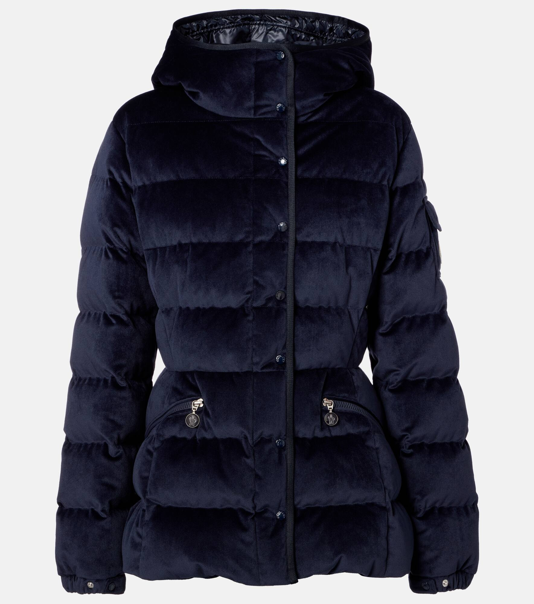 Inspired by the '70s, the Barante down jacket from Moncler is crafted with velvety-soft velour twill. The design is finished with a nipped-in waist, an adjustable hood, and a logo patch. Product Details - Material: 100% polyester - Care instructions: dry clean - Made in Moldova - Designer color name: Blue Navy - Item color: blue - Lining: 100% polyamide - Lining II: 100% polyamide - Filling: 90% down, 10% feathers - Contains non-textile parts of animal origin - Closure: two-way zipped front with snap-button fastenings - Pockets: zipped pockets - Drawstring hood - Cuff: buttoned, elasticated - Item number: P01068107 Size & Fit - True to size - Cinched waist - Non-stretchy fabric - Falls to the hip - The model seen in the picture is 178cm-5'10" and wearing a size 0