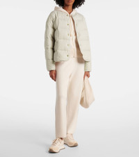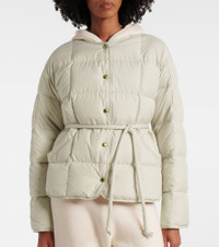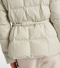 Moncler redefines outerwear with a fusion of innovation, function, and contemporary style. This leather-trimmed down jacket features a charming silhouette with a detachable belted waist and gold-tone snap-buttons down the front. Product Details - Material: 100% polyester - Care instructions: machine wash at 30 degrees - Made in Romania - Designer color name: White - Item color: white - Trim: 100% calf leather - Lining: 100% polyester - Filling: 90% down, 10% feathers - Contains non-textile parts of animal origin - Closure: snap-buttoned front - Item number: P01068100 Size & Fit - True to size - Loose fit, comes with belt - Non-stretchy fabric - Falls to the hip - The model seen in the picture is 178cm-5'10" and wearing a size 0