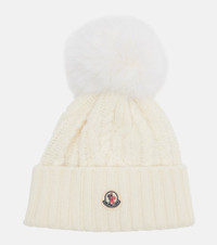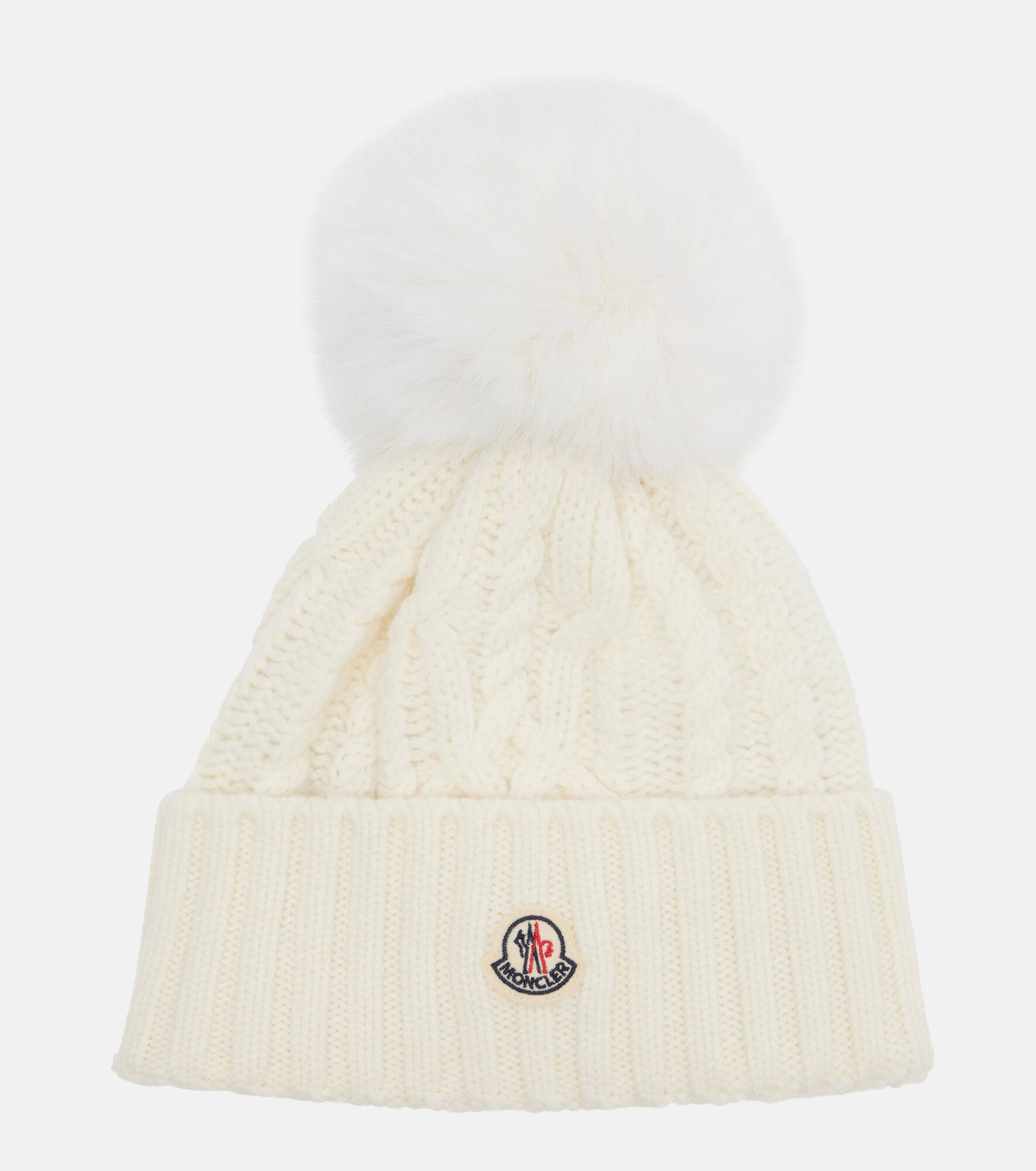 A heritage brand with a cult following, Moncler makes cold weather effortless to maneuver. This beanie is cable-knit in Italy from a plush blend of wool and cashmere and is defined by its pompom detail at the top. Product Details - Material: 70% wool, 30% cashmere - Care instructions: dry clean - Made in Italy - Designer color name: White - Item color: white - Material II: 59% modacrylic, 31% acrylic, 10% polyester - Item number: P01095635 Size & Fit - Min. circumference 55cm-21.5" - Max. circumference 62cm-24.5"