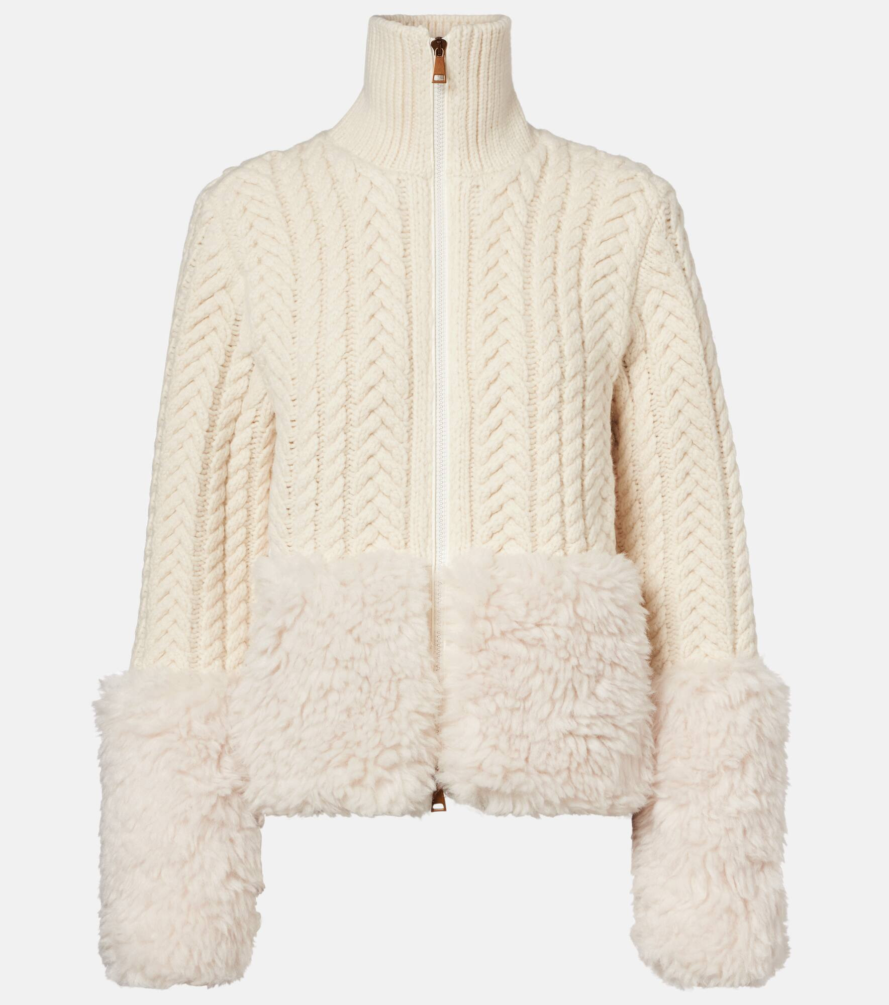 Moncler’s cornerstone designs have become luxury winter icons, favored by A-listers the world over. This cardigan is crafted from a cable-knit wool blend that's complete with a high neckline and plush trims. Product Details - Material: 92% wool, 8% polyamide - Care instructions: specialist clean - Made in Moldova - Designer color name: 034 - Item color: white - Trim: 100% polyester - Material II: 70% polyester, 30% cotton - Lining: 100% polyamide - Closure: two-way zipped front, snap-buttoned sides - Item number: P01101144 Size & Fit - True to size - Designed for a loose fit - Slightly stretchy fabric - Falls to the hip - The model seen in the picture is 178cm-5'10" and wearing a size XS