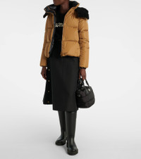 The Castelnou down jacket is lined in Longue Saison and features a satin-like finish and a teddy-trimmed hood. The Moncler Longue Saison achieves an unparalleled lightness, equally suited for cold-weather layering and transeasonal wear. Product Details - Material: 100% polyamide - Care instructions: hand wash - Made in Romania - Designer color name: 226 - Item color: beige, black - Lining: 100% polyamide - Lining II: 100% polyester - Filling: 90% down, 10% goose feathers - Contains non-textile parts of animal origin - Closure: two-way zipped front with snap-button fastenings - Detachable hood - Drawstring hood - Pockets: zipped pockets - Cuff: elasticated - Item number: P01098727 Size & Fit - True to size - Straight fit - Non-stretchy fabric - Falls to the hip - The model seen in the picture is 178cm-5'10" and wearing a size 0
