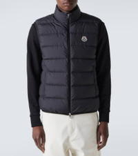 The Contrin quilted down vest features an elasticated hem, zipped pockets, and an internal pocket for secure storage. A two-way zipped front ensures ease of wear, while its streamlined silhouette channels Moncler’s technical minimalism. Product Details - Material: 100% polyester - Care instructions: hand wash - Made in Romania - Designer color name: Black - Item color: black - Lining: 100% polyester - Filling: 90% down, 10% feathers - Contains non-textile parts of animal origin - Closure: two-way zipped front - Pockets: snap-buttoned pockets, internal pocket - Hem: elasticated - Item number: P01068463 Size & Fit - True to size - Slim fit - Elasticated hem - Non-stretchy fabric - Slightly cropped - The model in the picture is 185cm-6'1" and wearing a size 3