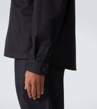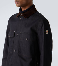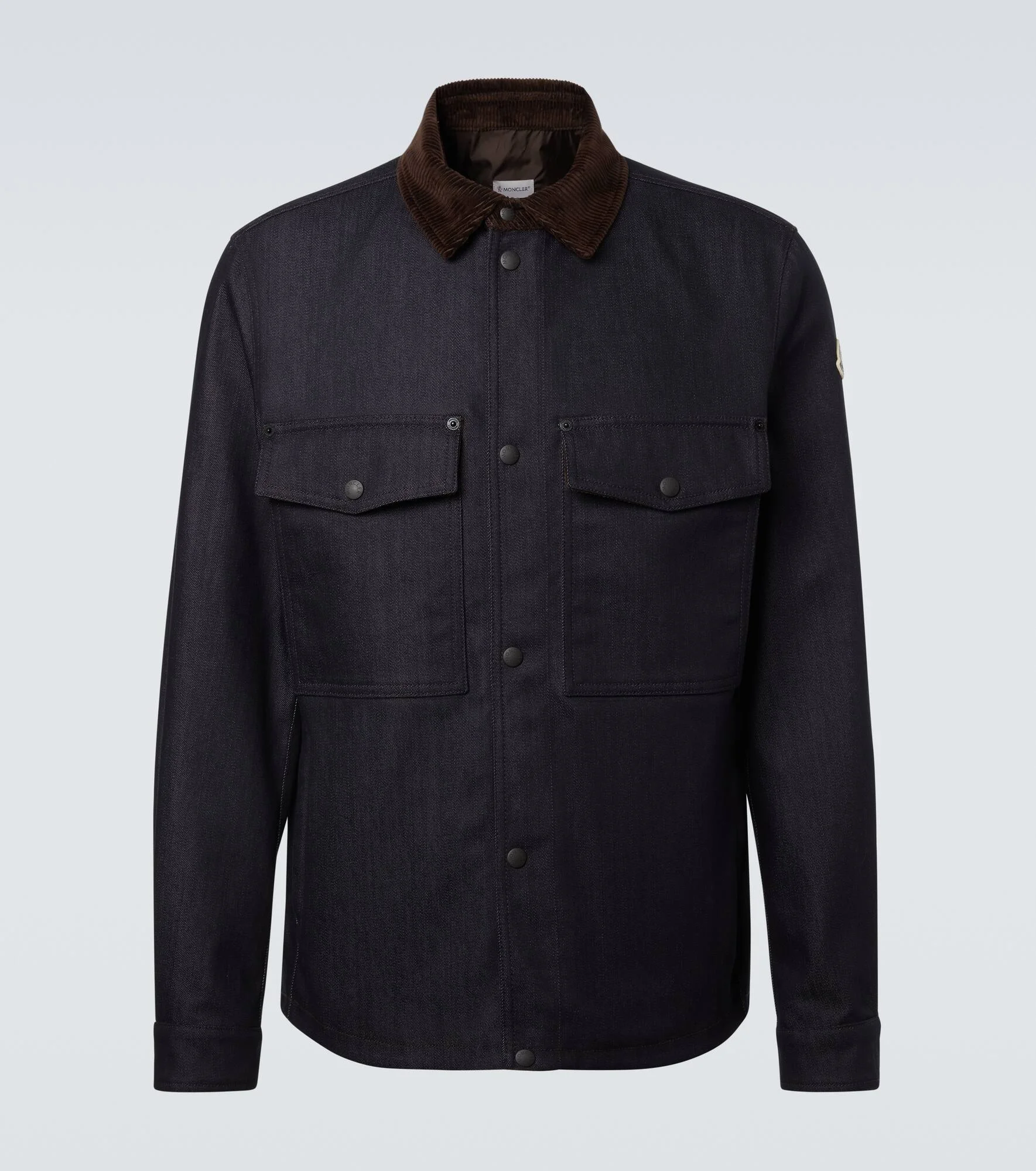 This shirt jacket from Moncler is the key to staying stylish in transitional weather. The style is crafted from dark-wash denim, secures with snap buttons, and is complete with a corduroy collar. Product Details - Material: 75% cotton, 24% polyester, 1% elastane - Care instructions: machine wash at 30 degrees - Made in Romania - Designer color name: Rhodonite - Item color: blue, brown - Material II: 100% cotton - Lining: 100% polyamide - Closure: two-way zipped front with snap-button fastenings - Pockets: snap-buttoned pockets, zipped pockets - Cuff: buttoned - Item number: P01088911 Size & Fit - True to size - Without pleats in the back - Straight fit - Non-stretchy fabric - Falls to the hip - Height of model is 189cm-74.5" and wears a size L