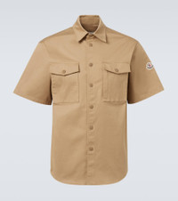 This short-sleeved cotton shirt features a snap-buttoned front and flap chest pockets. Finished with a classic point collar, it reflects Moncler’s refined take on functional everyday staples. Product Details - Material: 98% cotton, 2% elastane - Care instructions: machine wash at 30 degrees - Made in Romania - Designer color name: Caramel - Item color: beige - Short-sleeved shirt - Closure: snap-buttoned front - Pockets: flap chest pockets, zipped pocket - Collar: classic (Straight point) - Item number: P01068475 Size & Fit - True to size - Without pleats in the back - Classic fit - Non-stretchy fabric - Falls below the hip - The model in the picture is 185cm-6'1" and wearing a size S