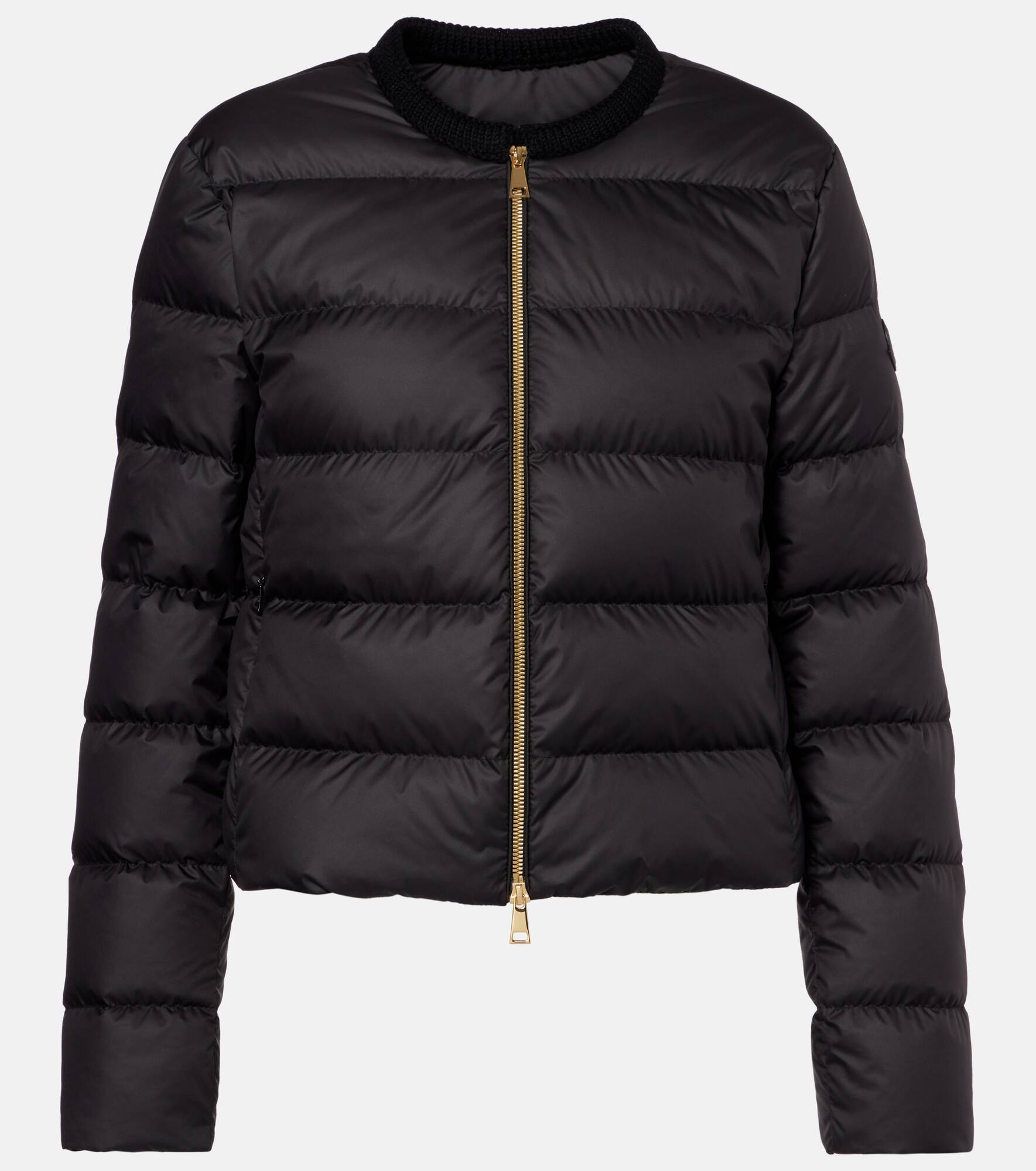 Moncler redefines outerwear with a fusion of innovation, function, and contemporary style. Made in Italy, this down jacket features a slightly cropped length with a statement gold-tone two-way zipped front. Product Details - Material: 100% polyester - Care instructions: hand wash - Made in Romania - Designer color name: Black - Item color: black - Trim: 100% calf leather - Lining: 100% polyester - Filling: 90% down, 10% feathers - Contains non-textile parts of animal origin - Closure: two-way zipped front - Pockets: zipped pockets - Item number: P01068099 Size & Fit - Fits small to size - we recommend trying one size larger - Straight fit - Non-stretchy fabric - Falls to the hip - The model seen in the picture is 178cm-5'10" and wearing a size 1
