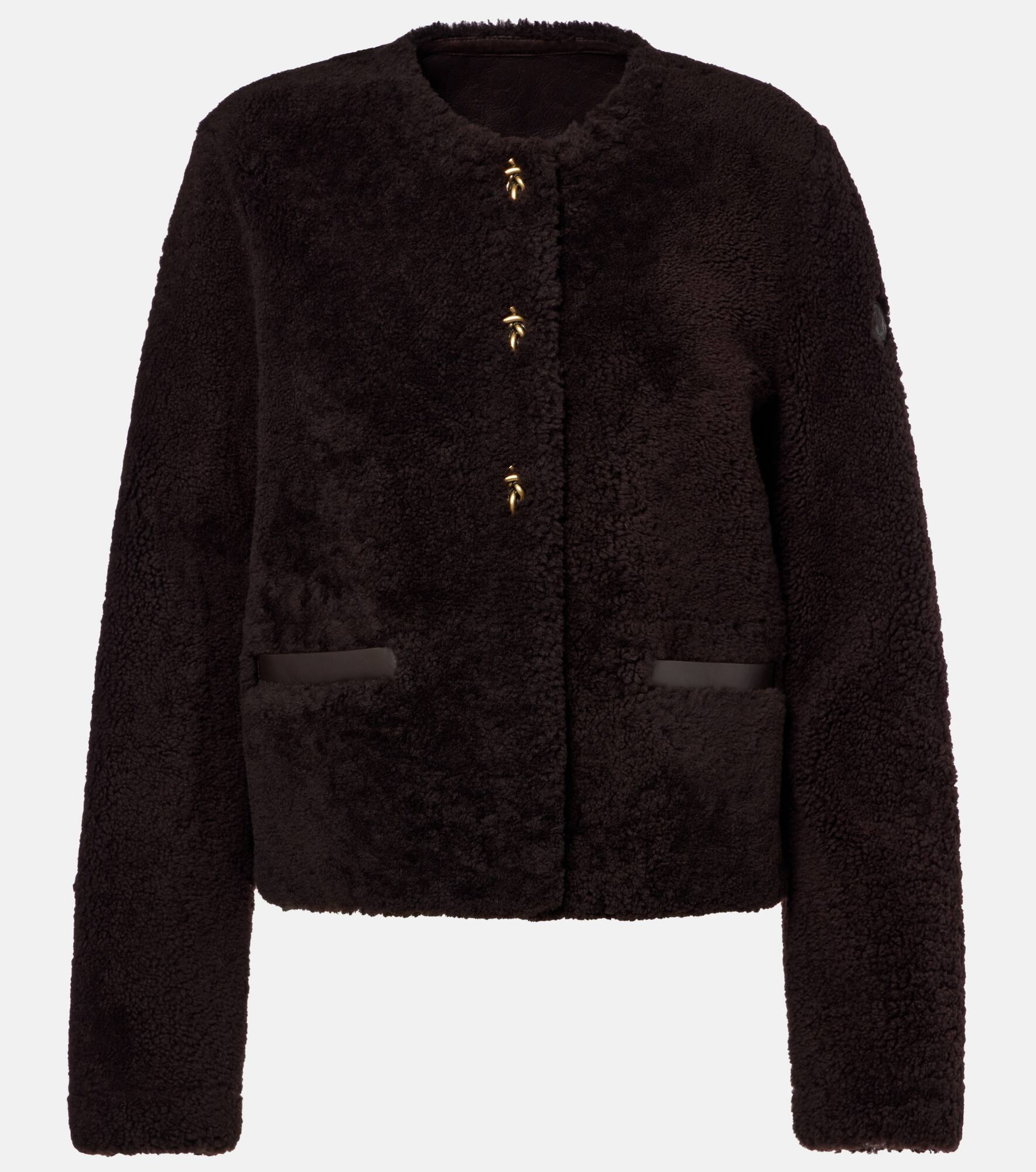 Moncler redefines outerwear with a fusion of innovation, function, and contemporary style. Made in Italy, this down jacket features a slightly cropped length with supple leather trimming and patch pockets. Product Details - Material: 100% polyamide - Care instructions: specialist clean - Made in Italy - Designer color name: Brown - Item color: brown - Trim: 100% lamb leather - Lining: 100% polyamide - Material II: 100% shearling - Filling: 90% down, 10% feathers - Contains non-textile parts of animal origin - Closure: snap-buttoned front - Pockets: patch pockets - Item number: P01068096 Size & Fit - True to size - Straight fit - Non-stretchy fabric - Slightly cropped - The model seen in the picture is 178cm-5'10" and wearing a size 0