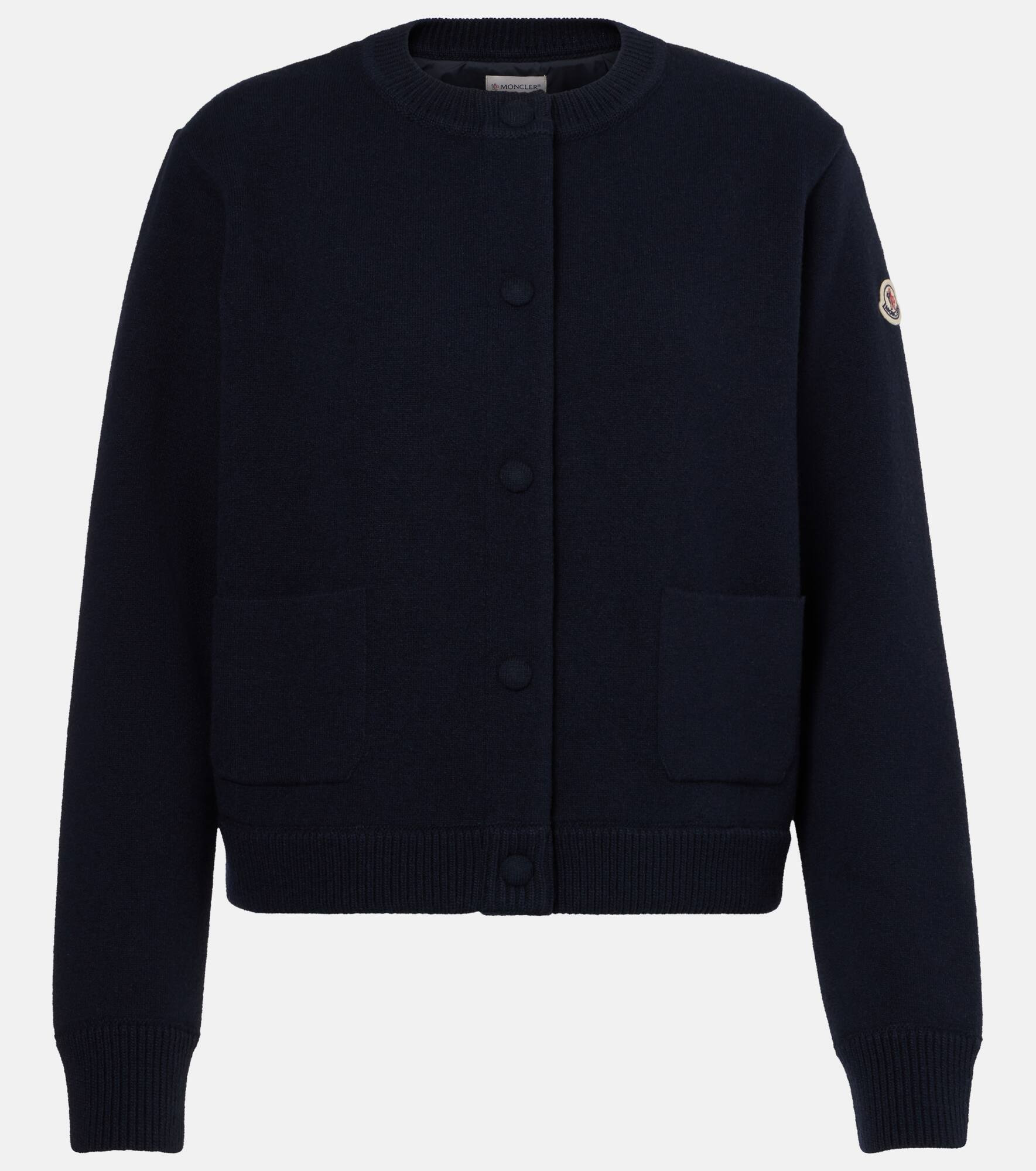 Moncler strikes the perfect balance between form and function for everyday wear. This down-filled cardigan features wool-blend trims with front patch pockets and snap-buttoned fastenings down the front. Product Details - Material: 100% polyester - Care instructions: dry clean - Made in Romania - Designer color name: Blue - Item color: blue - Material II: 62% wool, 29% cotton, 8% polyamide, 1% elastane - Lining: 100% polyester - Filling: 90% down, 10% feathers - Contains non-textile parts of animal origin - Closure: snap-buttoned fastenings - Pockets: patch pockets - Item number: P01068086 Size & Fit - True to size - Dropped shoulders - Straight fit - Non-stretchy fabric - Falls to the hip - The model seen in the picture is 178cm-5'10" and wearing a size XS