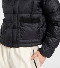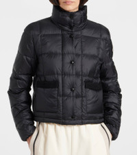 This down jacket features a two-way zipped front with snap-button fastenings. A streamlined design that highlights Moncler’s focus on functionality and refined technical detailing. Product Details - Material: 100% polyamide - Care instructions: hand wash - Made in Romania - Designer color name: Black - Item color: black - Lining: 100% polyamide - Filling: 90% down, 10% feathers - Contains non-textile parts of animal origin - Closure: two-way zipped front with snap-button fastenings - Item number: P01068067 Size & Fit - True to size - Straight fit - Adjustable hem - Non-stretchy fabric - Slightly cropped - The model seen in the picture is 178cm-5'10" and wearing a size 0