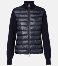 This mid-weight virgin wool cardigan features a down-paneled longue saison front for ultimate warmth. The Moncler Longue Saison achieves an unparalleled lightness, equally suited for cold-weather layering and transeasonal wear. Product Details - Material: 100% polyamide - Care instructions: dry clean - Made in Tunisia - Designer color name: Blue Navy - Item color: blue - Material II: 100% polyamide - Material III: 100% virgin wool - Lining: 100% polyamide - Lining II: 100% polyamide - Filling: 90% down, 10% feathers - Contains non-textile parts of animal origin - Closure: two-way zipped front - Collar: turtleneck - Cuff: ribbed - Item number: P01068092 Size & Fit - True to size - Straight fit - Partly stretchy fabric - Falls to the hip - The model seen in the picture is 178cm-5'10" and wearing a size XS