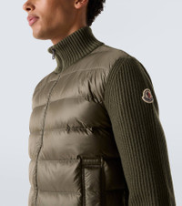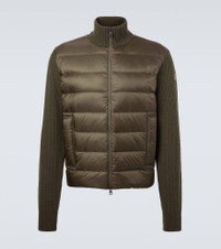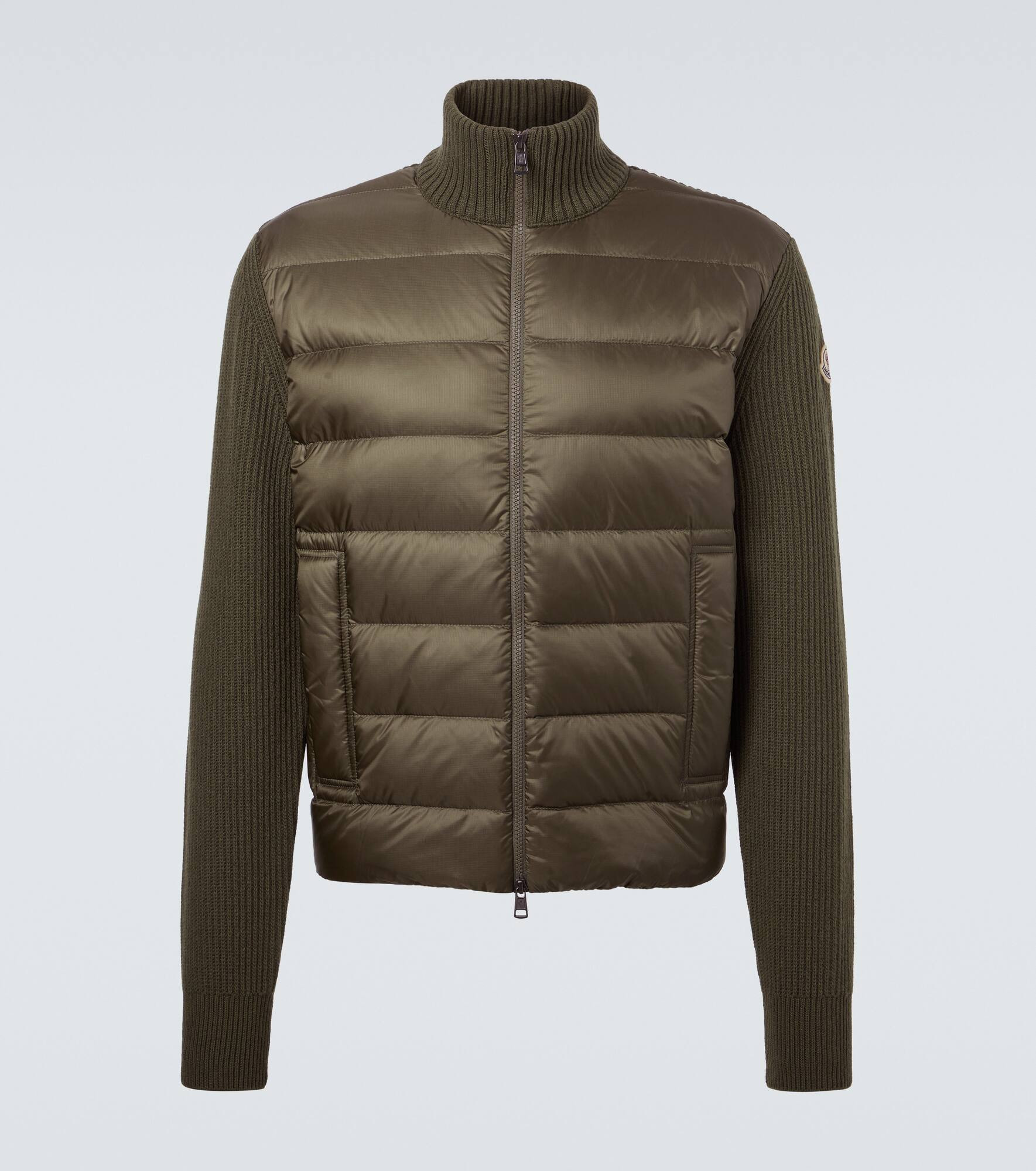 Dress for unpredictable weather with ease when sporting this jacket from Moncler. The design boasts down paneled front and is complete with ribbed knit wool and cashmere sleeves. Product Details - Material: 100% polyamide - Care instructions: dry clean - Made in Moldova - Designer color name: Olive Night - Item color: green - Material II: 90% wool, 10% cashmere - Lining: 100% polyamide - Filling: 90% down, 10% goose feathers - Pockets: zipped pockets - Closure: two-way zipped front - Contains non-textile parts of animal origin - Item number: P01088888 Size & Fit - True to size - Straight fit - Partly stretchy fabric - Falls to the hip - Height of model is 188cm-74" and wears a size L