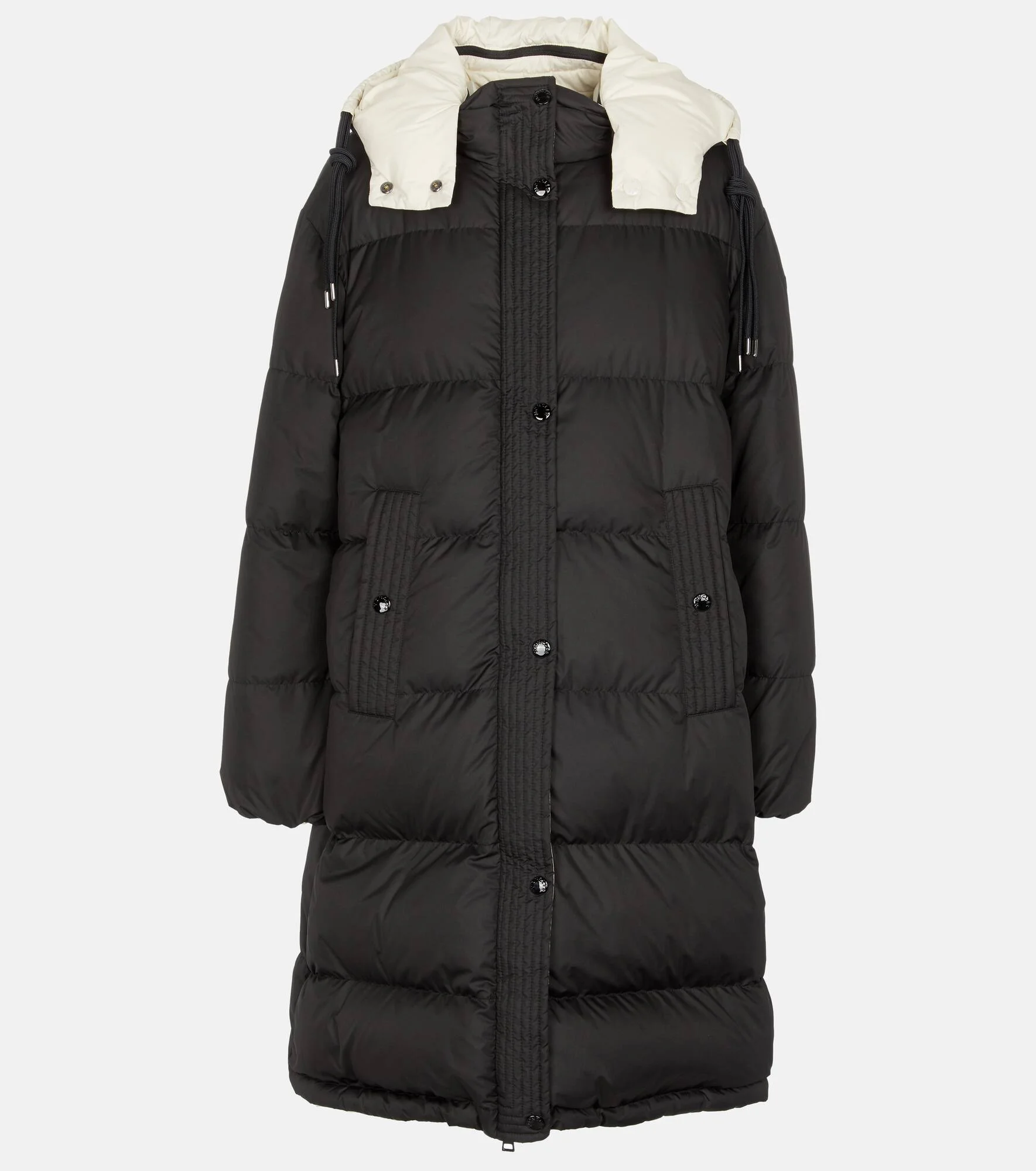 Performancewear is a forte of Moncler's, and there couldn't be a better example for this than the black Erysimum coat. It's cut from boudin-quilted technical taffeta with three contrast-colored drawstrings. Product Details - Lining: 100% polyester, fully lined - Material III: 100% polyester - Material: 100% polyester - Detachable hood, Drawstring hood - Pockets: snap-buttoned pockets - Designer color name: Black - Care instructions: machine wash at 30 degrees - Hood: 100% polyester - Filling: 90% down, 10% feathers - Material II: 100% polyamide - Closure: two-way zipped front with snap-button fastenings - Item number: P00575579 Size & Fit - Fits large to size - we recommend trying one size smaller - Dropped shoulders - Designed for a loose fit - Mid-weight material - Thick material - The model seen in the picture is 178cm-5'10" and wearing a size 0