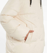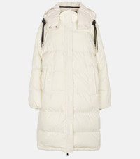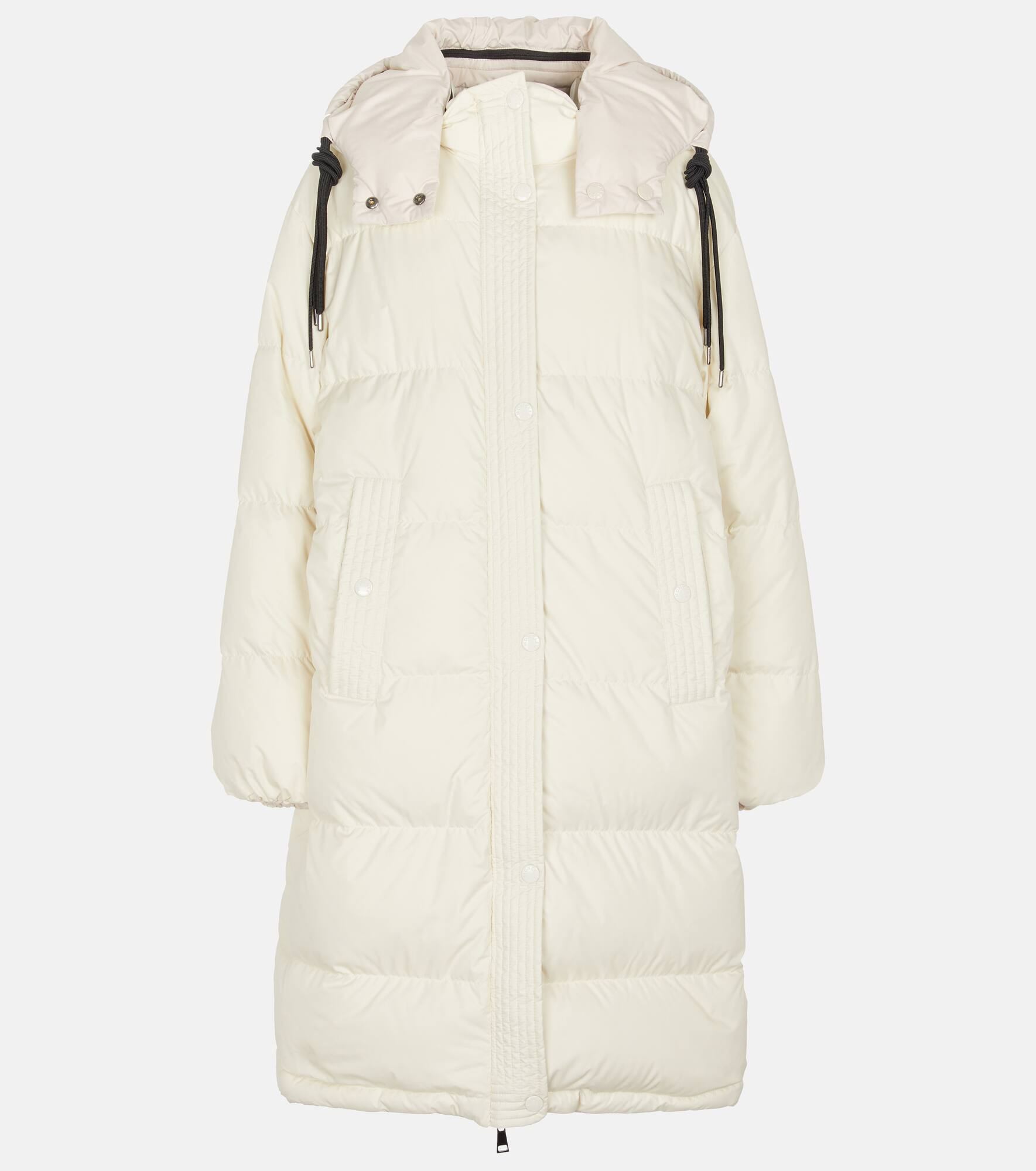 Performancewear is a forte of Moncler's, and there couldn't be a better example for this than the white Erysimum coat. It's cut from boudin-quilted technical taffeta with three contrast-colored drawstrings. Product Details - Lining: 100% polyester, fully lined - Material: 100% polyester - Material III: 100% polyester - Detachable hood, Drawstring hood - Pockets: snap-buttoned pockets - Designer color name: White - Care instructions: machine wash at 30 degrees - Hood: 100% polyester - Filling: 90% down, 10% feathers - Material II: 100% polyamide - Closure: two-way zipped front with snap-button fastenings - Item number: P00575578 Size & Fit - Fits large to size - we recommend trying one size smaller - Dropped shoulders - Designed for a loose fit - Mid-weight material - Thick material - The model seen in the picture is 178cm-5'10" and wearing a size 0