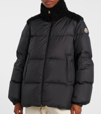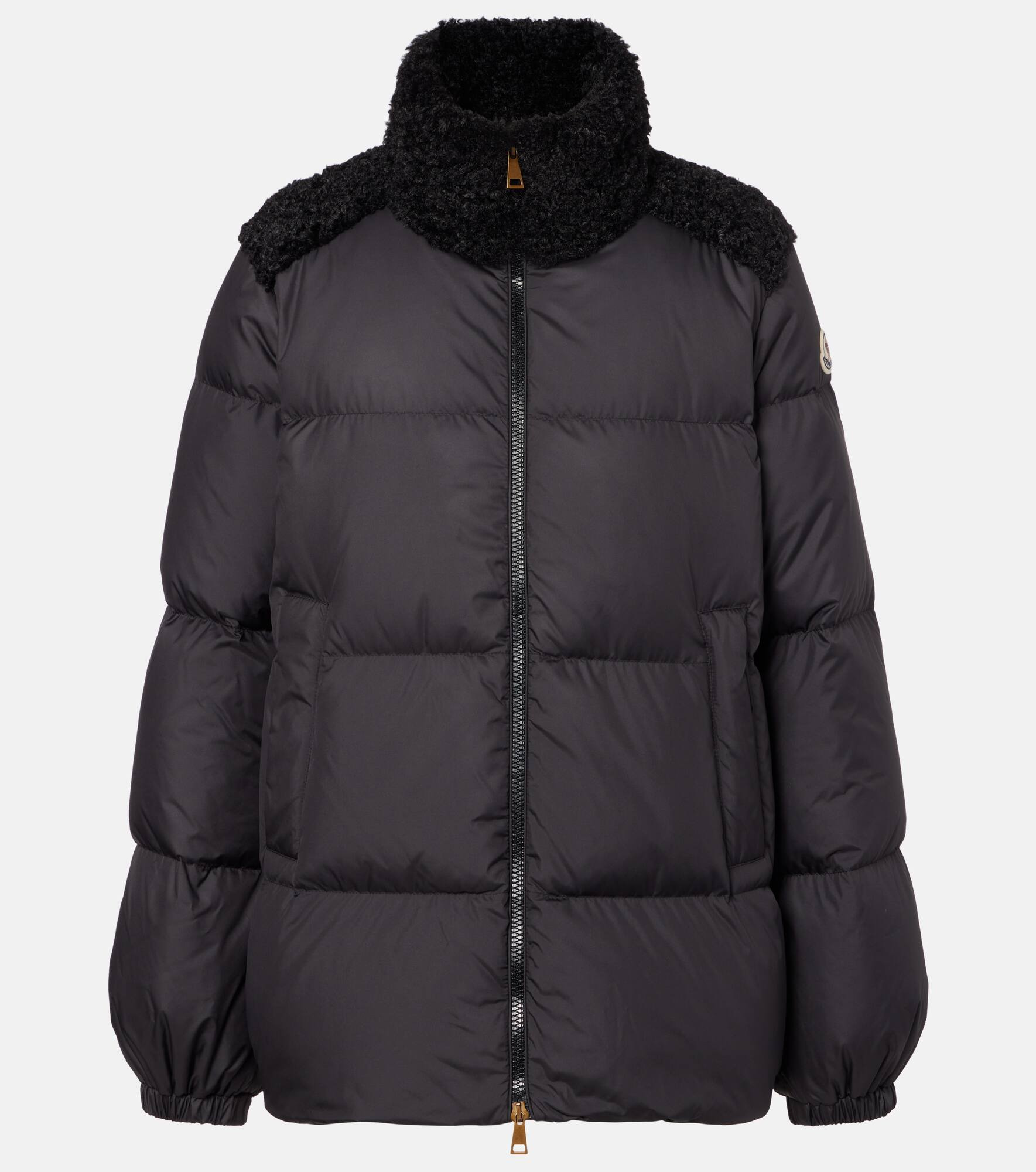 Renowned for its heritage and cult appeal, Moncler turns cold-weather dressing into an effortless statement of style. The Esnaie down jacket features soft teddy fleece on the collar and back, side pockets, and a two-way zip closure. Product Details - Material: 100% polyester - Care instructions: machine wash at 30 degrees - Made in Moldova - Designer color name: 999 - Item color: black - Lining: 100% polyester - Material II: 100% polyester - Filling: 90% down, 10% feathers - Contains non-textile parts of animal origin - Closure: two-way zipped front - Pockets: zipped pockets - Cuff: elasticated - Drawstring at the hem for adjustable fit - Item number: P01100846 Size & Fit - True to size - Designed for a loose fit - Adjustable hem - Non-stretchy fabric - Falls below the hip - The model seen in the picture is 178cm-5'10" and wearing a size 0