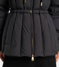 The Estom down jacket showcases Moncler’s signature craftsmanship for the cold-weather season. Designed with a drawstring hood, zipped pockets, and a zip closure with snap fastening, this piece combines function with refined style. Product Details - Material: 100% polyester - Care instructions: hand wash - Made in Romania - Designer color name: 999 - Item color: black - Lining: 100% polyester - Lining II: 100% polyester - Filling: 90% down, 10% feathers - Contains non-textile parts of animal origin - Hardware color: gold - Drawstring hood - Closure: two-way zipped front with snap-button fastenings - Pockets: zipped pockets - Cuff: elasticated - Drawstring waist - Drawstring at the hem for adjustable fit - Item number: P01100852 Size & Fit - True to size - Loose fit, drawstring waist - Adjustable hem - Non-stretchy fabric - Falls below the hip - The model seen in the picture is 178cm-5'10" and wearing a size 0