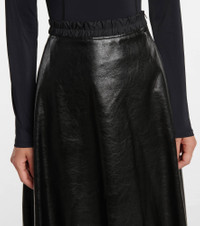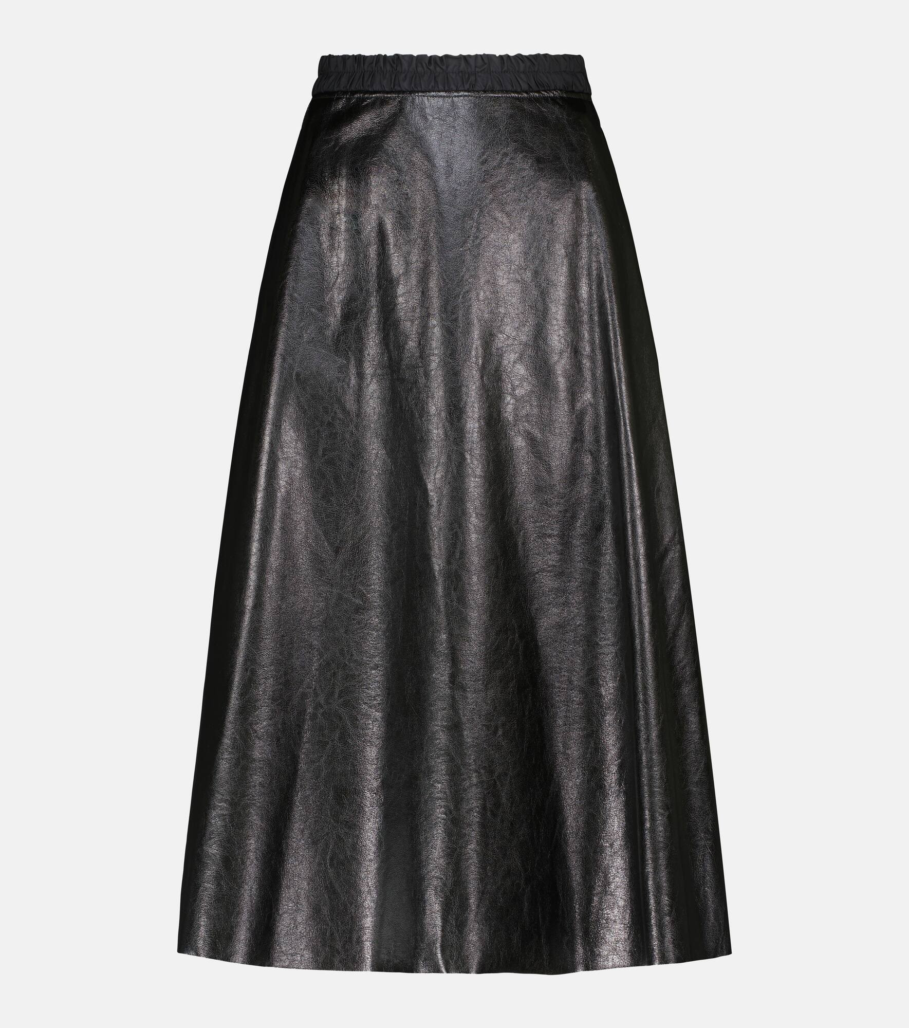 This faux leather midi skirt from Moncler is primed for matching to the label's famed outerwear. Made from crackled black faux leather to a fluted A-line silhouette, it's framed by an elasticated waist for an adjustable rise, and nod to athleisure. Product Details - Made in Italy - Closure: zipped side - Material II: 100% polyamide - Designer color name: Black - Material: 91% polyester, 9% elastane - Care instructions: hand wash - Item number: P00575593 Size & Fit - Fits large to size - we recommend trying one size smaller - Elasticated waist - Mid-weight material - High-waisted - The model seen in the picture is 178cm-5'10" and wearing a size IT 38