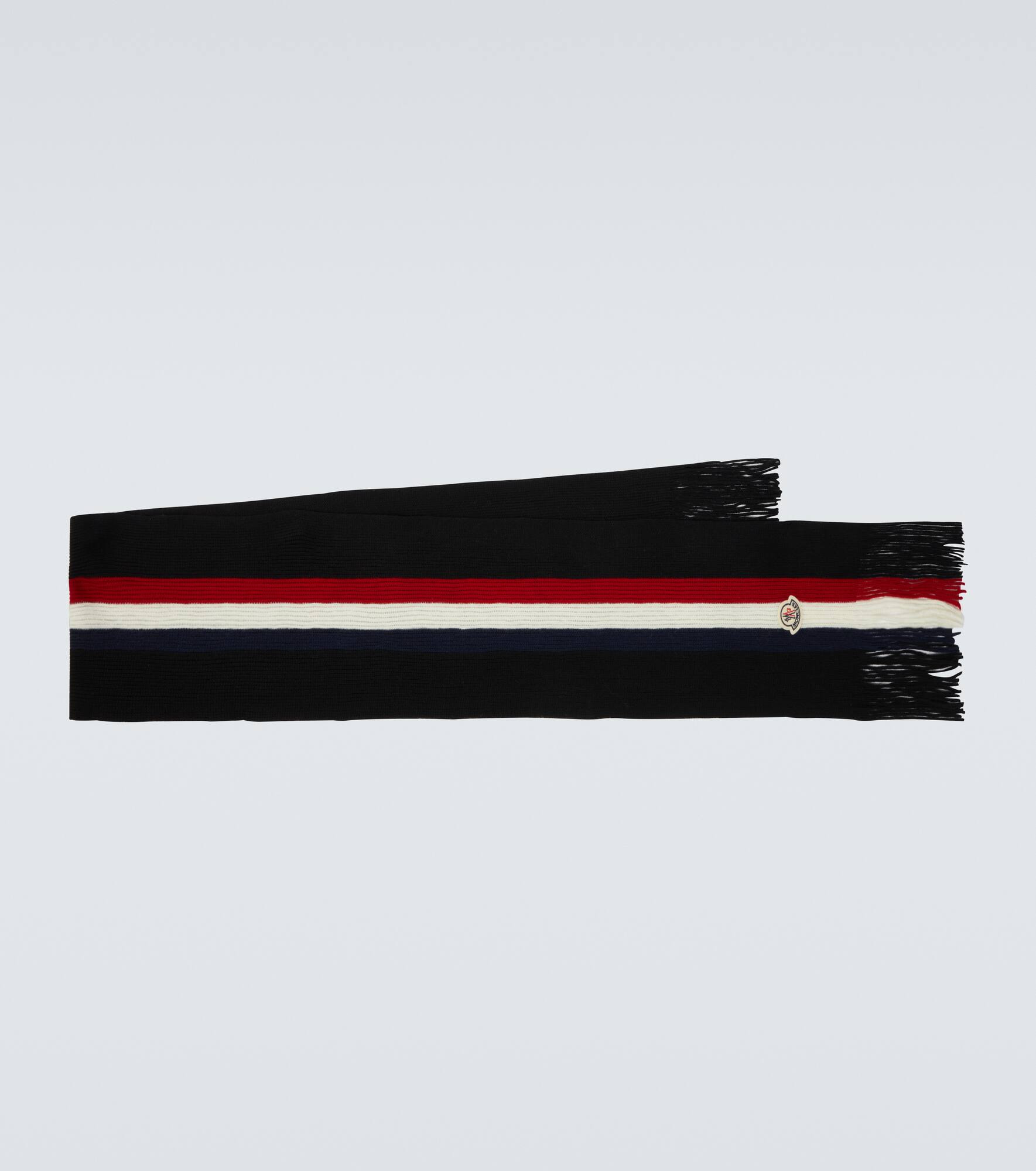 Knitted from virgin wool, this Moncler scarf is accented with the label’s signature tricolor stripe down the center. Refined fringed hems and a logo patch complete the design with a distinctive finish. Product Details - Material: 100% virgin wool - Care instructions: dry clean - Made in the UK - Designer color name: Black - Item color: black, multicolor - Item number: P01088924 Size & Fit - Length 160cm-63" - Width 20cm-8" - Length of fringe 13,5cm-5.5"