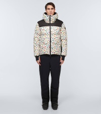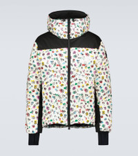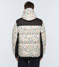 This 3 Moncler Grenoble x Moncler Genius jacket is crafted from nylon featuring a multicolored print, and is padded with feather-down. Product Details - Material III: 100% polyamide - Closure: two-way zipped front - Material II: 100% polyester - Drawstring hood - Pockets: internal pocket, zipped pockets - Lining: 100% polyester, fully lined - Sleeve thumb holes - Material: 100% polyamide - Filling: 90% down, 10% feathers - Material IV: 83% polyamide, 17% elastane - Item number: P00581711 Size & Fit - True to size - Designed for a loose fit - Snow skirt inside - Mid-weight material - Thick material - Falls to the hip - The model in the picture is 185cm-6'1" and wearing a size 2