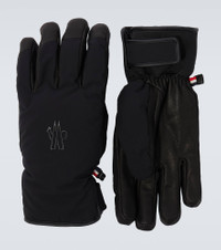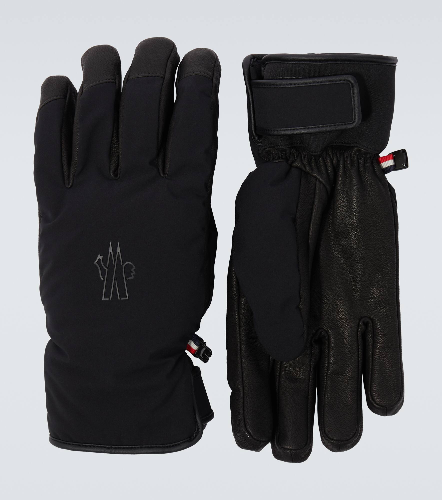 Committed to precision and performance on the slopes, Moncler Grenoble champions technical and innovative skiwear. These soft-shell ski gloves feature insulating padding, logo detailing, and elasticated, VELCRO®-fastened cuffs. Product Details - Material: 53% polyester, 47% elastomultiester - Care instructions: specialist clean - Made in Vietnam - Designer color name: Black - Item color: black - Material II: 100% goat leather - Lining: 100% polyamide - Material III: 100% polyester - Filling: 100% polyester - Contains non-textile parts of animal origin - Closure: VELCRO® fastening - Includes: dust bag - Item number: P01068562 Size & Fit - Length of size M = 29cm-11.5" - Length of size L = 30cm-12" - Length of size XL = 31cm-12"