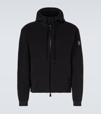 Committed to precision and performance on the slopes, Moncler Grenoble champions technical and innovative skiwear. This zip-up hoodie features a drawstring hood, slant pockets, elasticated cuffs and hem, and a discreet logo patch. Product Details - Material: 100% polyester - Care instructions: machine wash at 30 degrees - Made in Romania - Designer color name: Black - Item color: black - Material II: 100% polyester - Lining: 100% polyester - Hood: 100% polyester - Lining II: 100% polyester - Filling: 100% polyester - Closure: two-way zipped front - Drawstring hood - Pockets: slant pockets - Cuff: buttoned, elasticated - Hem: elasticated - Hood - Item number: P01068565 Size & Fit - True to size - Dropped shoulders - Straight fit - Partly stretchy fabric - Falls to the hip - The model in the picture is 185cm-6'1" and wearing a size L