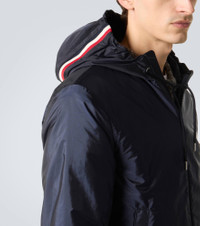 Since the 1980s, Moncler has cemented its cold-weather expertise with the glossy and protective nylon laque shell fabric. This jacket is designed with a drawstring hood and elasticated cuffs. Product Details - Material: 100% polyamide - Care instructions: machine wash at 30 degrees - Made in Romania - Designer color name: Navy - Item color: blue - Hood: 100% polyamide - Closure: two-way concealed zipped front - Drawstring hood - Cuff: elasticated - Hem: elasticated - Item number: P01129517 Size & Fit - True to size - Straight fit - Elasticated hem - Non-stretchy fabric - Falls to the hip - The model in the picture is 185cm-6'1" and wearing a size 3