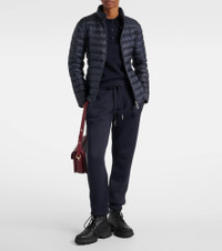 The Igelle down jacket showcases the brand's logo on an embossed patch on the arm. Exclusively sourced from DIST-certified suppliers, all Moncler down is derived from farmed geese as a byproduct of the food industry. Product Details - Material: 100% polyamide - Care instructions: hand wash - Made in Romania - Designer color name: Blue Navy - Item color: blue - Lining: 100% polyamide - Filling: 90% down, 10% feathers - Contains non-textile parts of animal origin - Item number: P01068112 Size & Fit - True to size - Cinched waist - Non-stretchy fabric - Falls to the hip - The model seen in the picture is 178cm-5'10" and wearing a size 0