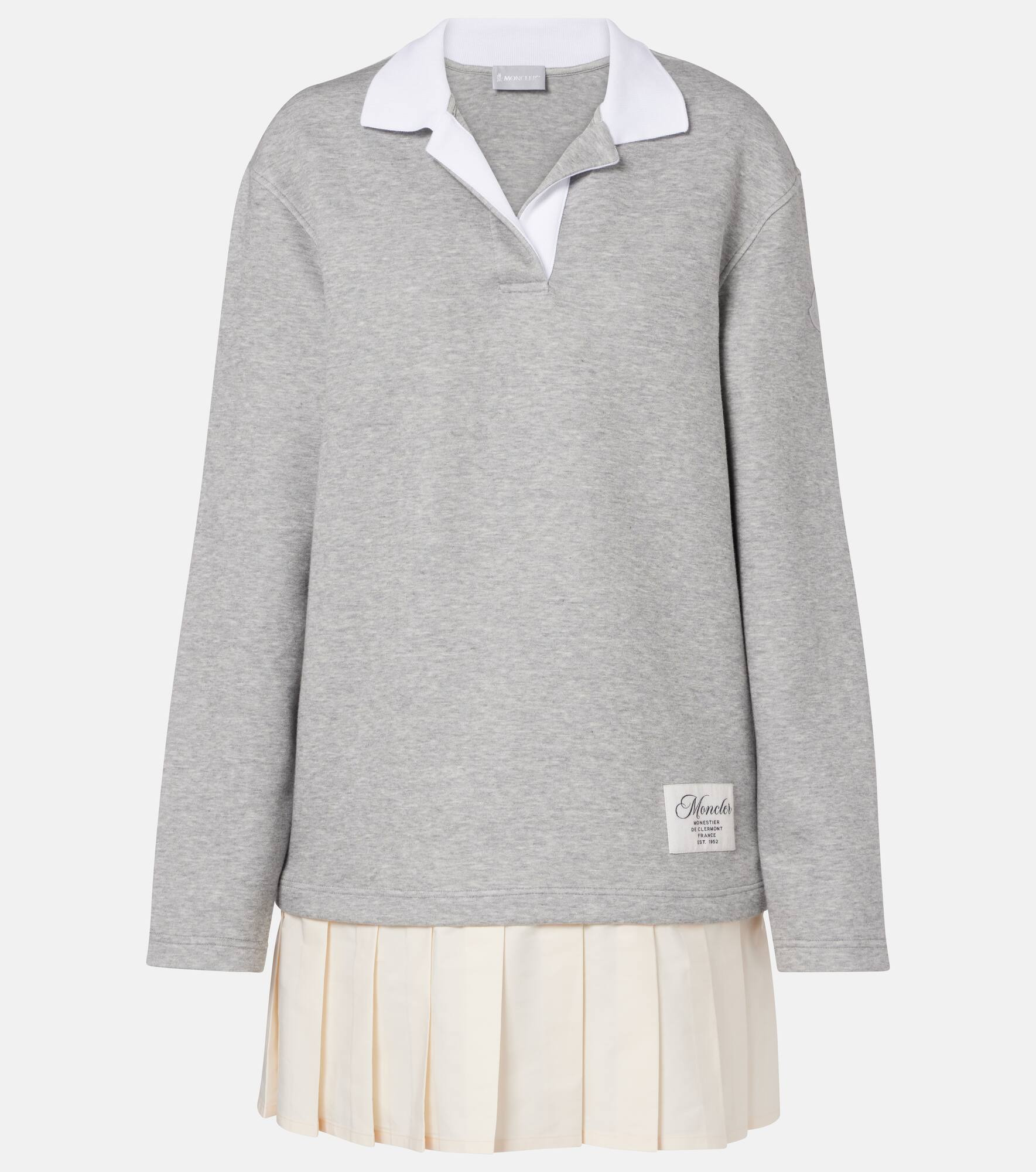 A comfortable minidress is an excellent addition to your wardrobe. Reach for this piece from Moncler, made from jersey and featuring dropped shoulders. Product Details - Material: 54% cotton, 46% polyamide - Care instructions: machine wash at 30 degrees - Made in Albania - Designer color name: Gray - Item color: gray, white - Material II: 100% polyester - Collar: polo collar - Item number: P01068139 Size & Fit - True to size - Dropped shoulders - Designed for a loose fit - Partly stretchy fabric - The model seen in the picture is 178cm-5'10" and wearing a size XS