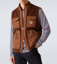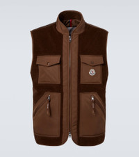 Count on Moncler for protective layers to wear on repeat, like the Karakai vest. Built with panels of soft fleece and technical fabric, the design features insulating down filling and functional pockets. Product Details - Material: 100% polyester - Care instructions: hand wash - Made in Romania - Designer color name: Dark Chocolate - Item color: brown - Material II: 73% polyester, 27% acrylic - Lining: 100% polyester - Material III: 100% polyester - Filling: 90% down, 10% goose feathers - Contains non-textile parts of animal origin - Hardware color: silver - Pockets: flap chest pockets, zipped pockets - Closure: two-way zipped front - Item number: P01129617 Size & Fit - True to size - Straight fit - Non-stretchy fabric - Cropped - Height of model is 189cm-74.5" and wears a size 4