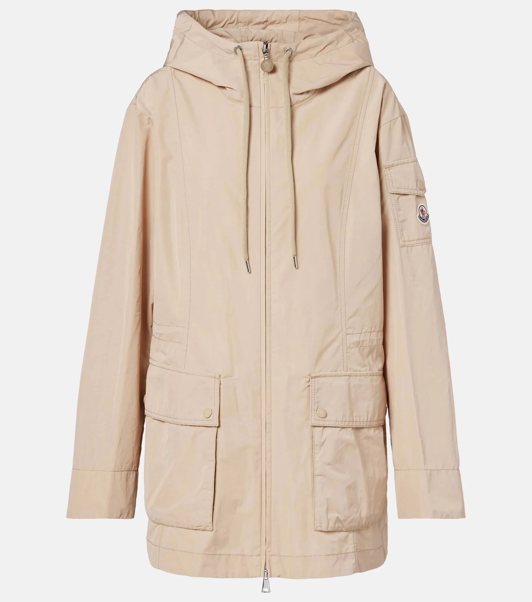 A heritage brand with a cult following, Moncler makes all seasons effortless to maneuver. Carefully crafted from technical poplin, the Leandro parka features a drawstring at the waist for a cinched effect and an adjustable hood. Product Details - Material: 63% polyester, 37% cotton - Care instructions: machine wash at 30 degrees - Made in Italy - Color: beige - Designer color name: 20J - Lining: 63% polyester, 37% cotton - Closure: two-way zipped front - Pockets: flap pockets, sleeve pocket - Drawstring hood - Item number: P01127350 Size & Fit - Fits small to size - we recommend trying one size larger - Loose fit, drawstring waist - Non-stretchy fabric - Falls below the hip - The model seen in the picture is 178cm-5'10" and wearing a size 1