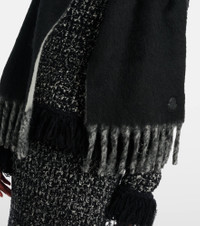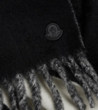 For cold-weather accessories, look to Moncler. This scarf is expertly Italian-crafted from an warming alpaca and wool blend with a logo patch and fringed trims. Product Details - Material: 50% alpaca wool, 30% wool, 20% polyamide - Care instructions: dry clean - Made in Italy - Designer color name: Nero - Item color: black - Details: 100% calf leather - Contains non-textile parts of animal origin - Item number: P01110353 Size & Fit - Length 225cm-88.5" - Width 28cm-11" - Length of fringe 12cm-4.5"