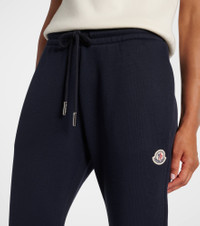 Crafted from a cotton-blend, these sweatpants from Moncler feature drawstrings at the waist and tapered legs. This design showcases the brand's logo on an embossed patch. Product Details - Material: 85% cotton, 15% polyamide - Care instructions: machine wash - Made in Turkey - Designer color name: Blue Navy - Item color: blue - Item number: P01068185 Size & Fit - True to size - Elasticated waist - Adjustable at the waist - Stretchy fabric - Tapered leg - The model seen in the picture is 178cm-5'10" and wearing a size XS