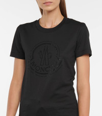 Elevate your off-duty wardrobe with this black T-shirt from Moncler. Made from cotton jersey, it has a classic fit and features the label logo printed tonally at the chest. Product Details - Care instructions: machine wash at 30 degrees - Material: 100% cotton - Designer color name: Black - Item number: P00575606 Size & Fit - True to size - Straight fit - Mid-weight material - Slightly cropped - The model seen in the picture is 178cm-5'10" and wearing a size XS