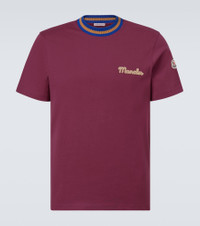 Embrace a vintage-inspired take on a wardrobe classic with this T-shirt from Moncler. The style is crafted from knitted cotton and topped with the brand’s logo. Product Details - Material: 100% cotton - Care instructions: machine wash at 30 degrees - Made in Turkey - Designer color name: Gothic Red - Item color: red - Item number: P01068490 Size & Fit - True to size - Straight fit - Slightly stretchy fabric - Falls below the hip - Height of model is 192cm-75.5" and wears a size L