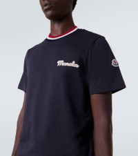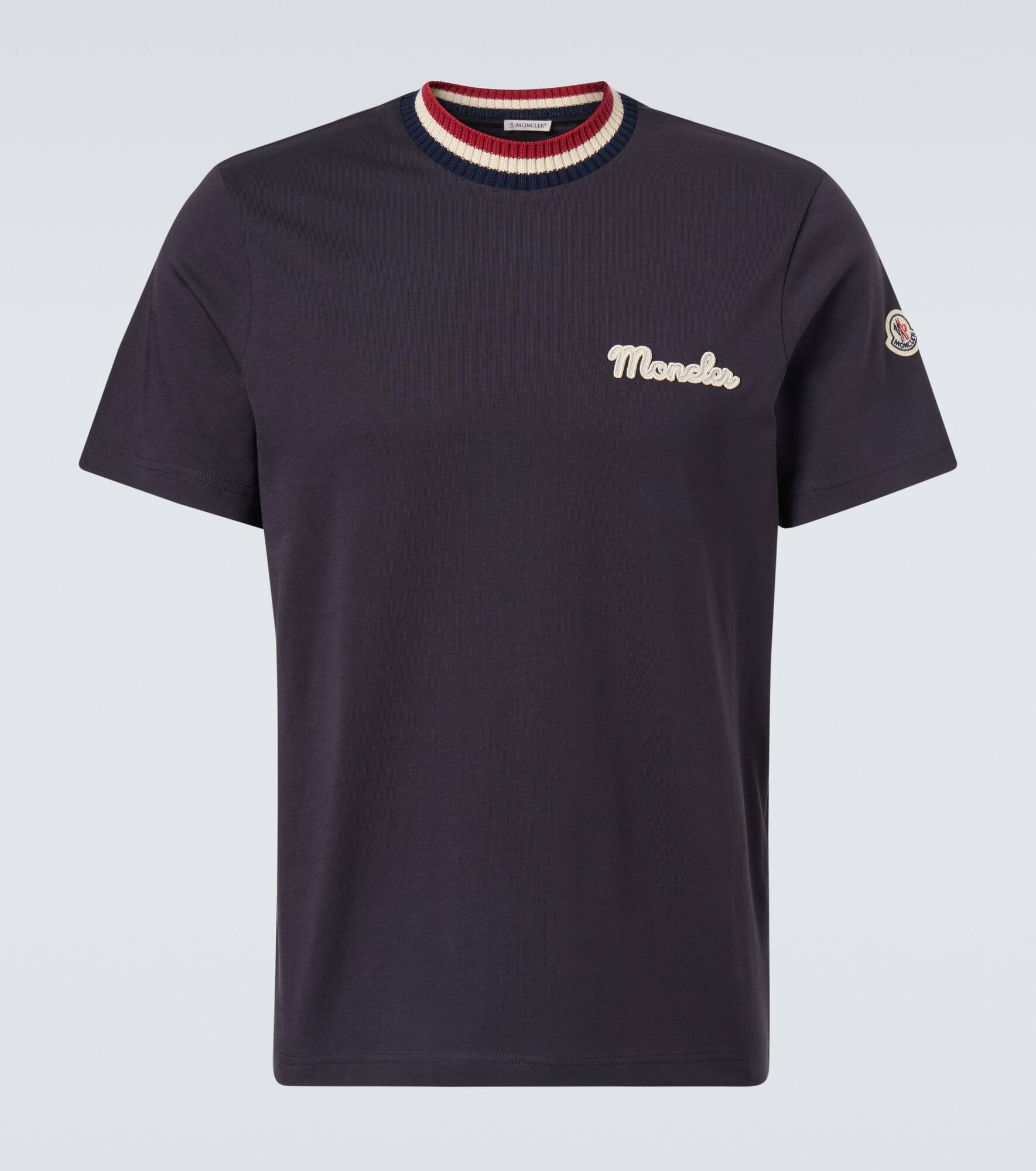Embrace a vintage-inspired take on a wardrobe classic with this T-shirt from Moncler. The style is crafted from knitted cotton and topped with the brand’s logo. Product Details - Material: 100% cotton - Care instructions: machine wash at 30 degrees - Made in Turkey - Designer color name: Navy Blue - Item color: blue - Item number: P01068491 Size & Fit - True to size - Straight fit - Slightly stretchy fabric - Falls below the hip - Height of model is 192cm-75.5" and wears a size L